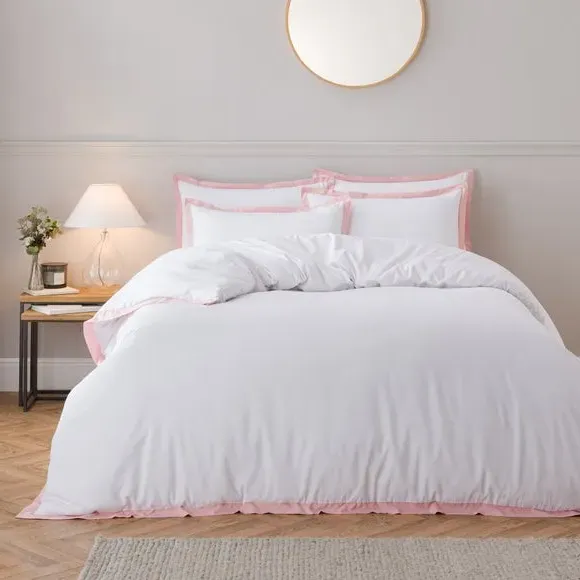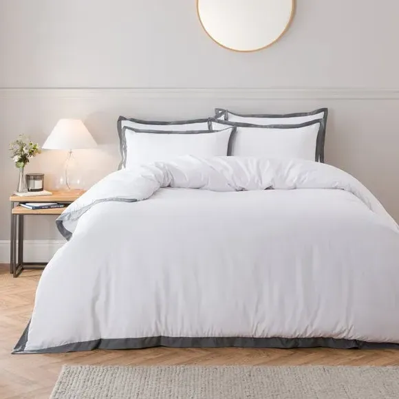 Oxford Edge Duvet Cover Set - White, Microfibre