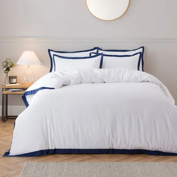 Home  /  Bedding & Textile  /  Oxford Edge Duvet Cover Set - White, Microfibre