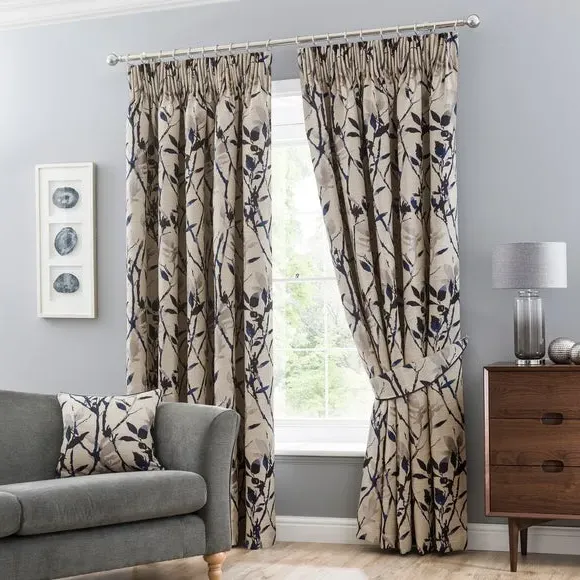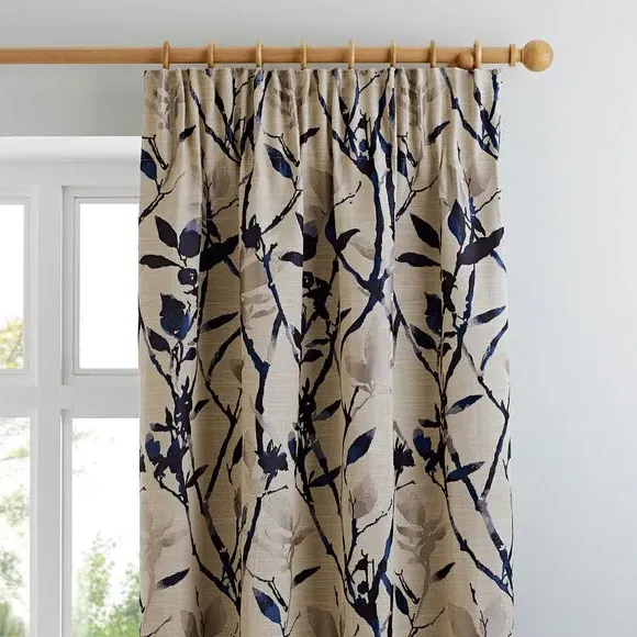 The curtains feature a Japanese-inspired floral design woven into luxurious jacquard fabric for an opulent finish. The traditional pencil pleat header creates a beautiful undulating drape whether drawn or closed, while the full lining provides added privacy and improved insulation. The durable construction ensures longevity, and the trailing botanical pattern adds sophisticated elegance to the fabric.