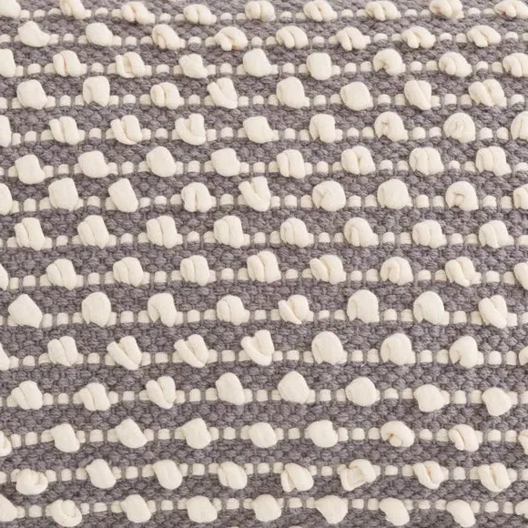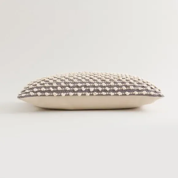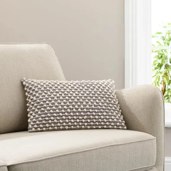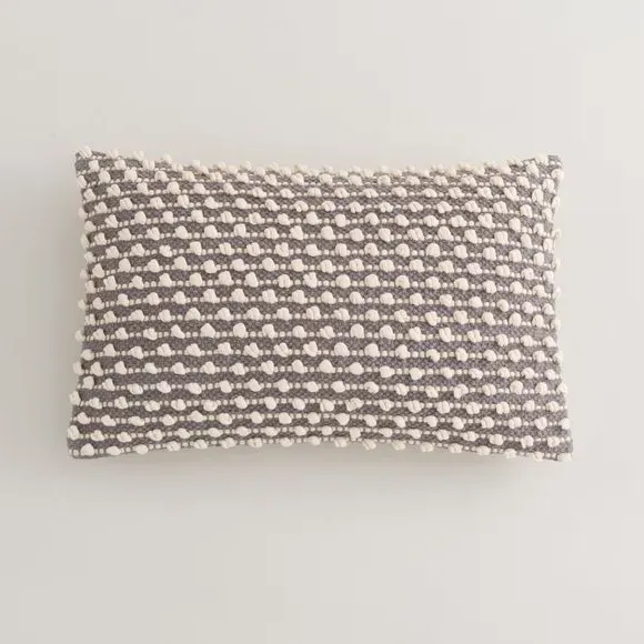 * Bobble design* Textured style* Zip fastening Made with a woven bobble design and striped style, this bobble cushion will be a statement piece within any room of the house, that also complements an array of home decors with its beautiful, modern colourway. The plump cushion, has a choice of fillings - recycled polyester hollowfibre or feather, both secured by a zip, ensuring you can clean the cover easily.