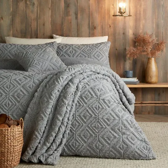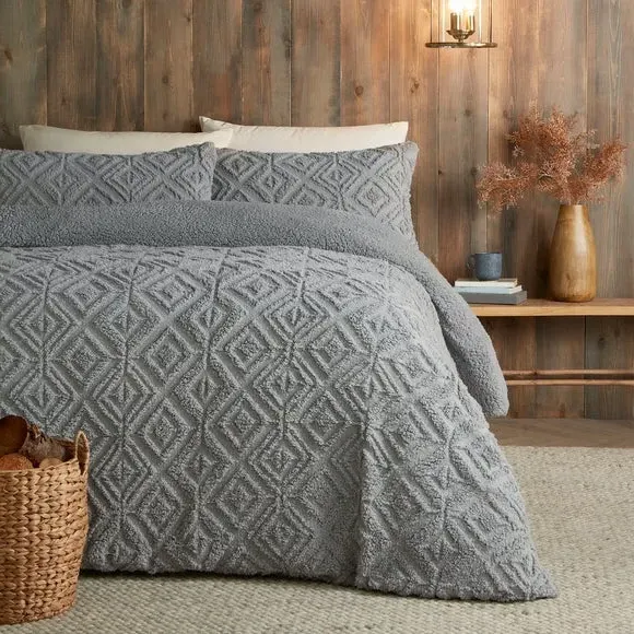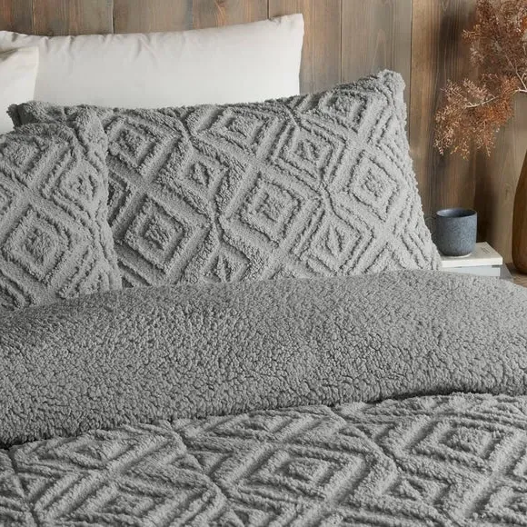 * Soft and durable polyester Composition* Global inspired, geometric Design* Includes standard pillowcase(s)* Popper closure* Machine washable Elevate your bedroom with the understated elegance of the Romo Duvet Cover Set in grey. Featuring an intricately detailed geometric pattern inspired by global designs, this set blends contemporary flair with timeless sophistication. Crafted from durable polyester, it ensures a soft, luxurious feel while remaining easy to care for. The popper closure and machine-washable fabric make it as practical as it is stylish. Pair it with your favourite decor pieces to create a modern, serene retreat you’ll love coming home to. This collection is verified by OEKO-TEX and independently tested for harmful substances as well as manufactured using sustainable processes under socially responsible working conditions.