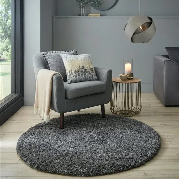 The round shaggy rug offers lasting comfort with its thick 5cm pile that bounces back after use. Crafted from synthetic fibres, it provides easy maintenance and durability, while the plush texture adds warmth underfoot. The resilient construction suits high-traffic areas, and the synthetic material ensures simple cleaning with regular vacuuming.