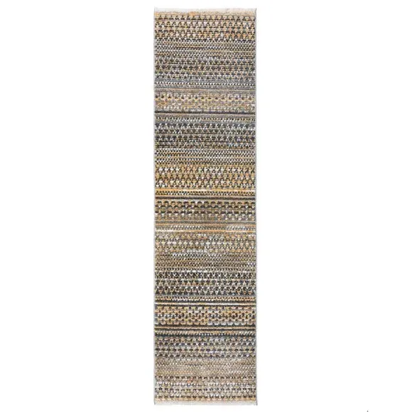 The runner rug combines traditional design with hard-wearing polypropylene construction, featuring an imitation hand-knotted effect. Its soft-touch surface provides durability for busy households, while the fringe detailing adds authentic character. The latex backing ensures stability and floor protection, and the material resists wear with regular turning and proper care.