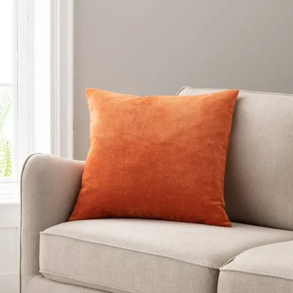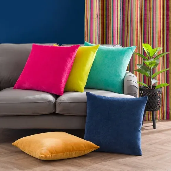 * Recycled velour cover* Choice of a plump polyester fibre or feather filled insert* Machine Washable* Beautiful Plain Dyed Colours* Zip fastening This square velour cushion offers a blend of simplicity and elegance, available in a variety of rich colours to suit any interior. Its soft, luxurious fabric feels great to the touch, and the choice of a plump feather or polyester fibre insert ensures maximum comfort. The cushion features a removable cover with a zip fastening, making it easy to clean and maintain, as it’s machine washable. With a stylish piped edge, the cushion adds a polished look and is perfect for pairing with our Recycled Velour Curtains.