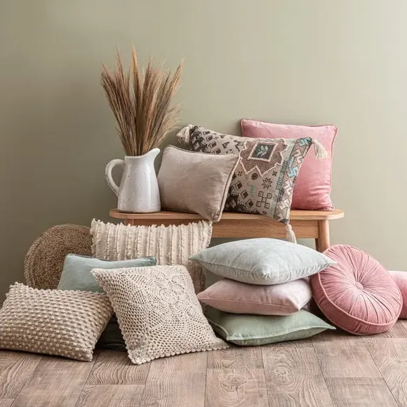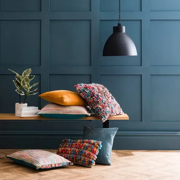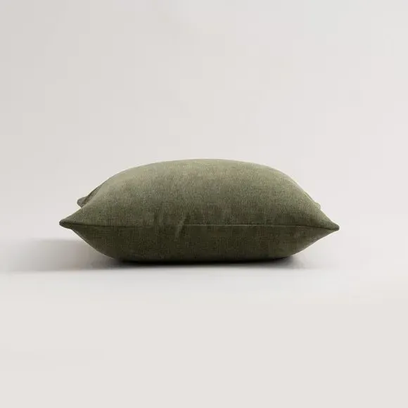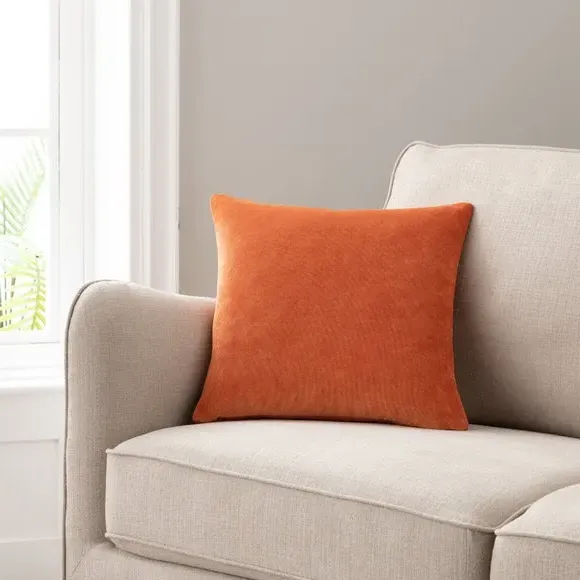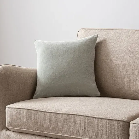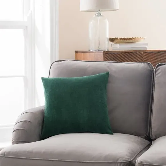 The cushion offers luxurious comfort with its recycled velour cover, featuring a choice of plump polyester fibre or feather filling. Its removable cover includes zip fastening for easy maintenance, while the machine washable design adds convenience. The piped edge provides a polished finish, and the soft fabric feels great to the touch.