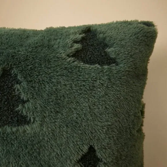 The cushion features a festive tree design crafted from soft faux fur fabric that provides luxurious comfort. Its playful holiday shape adds seasonal charm to seating areas, while the machine washable construction ensures easy maintenance. The plush faux fur material offers both visual appeal and tactile softness for cozy relaxation.