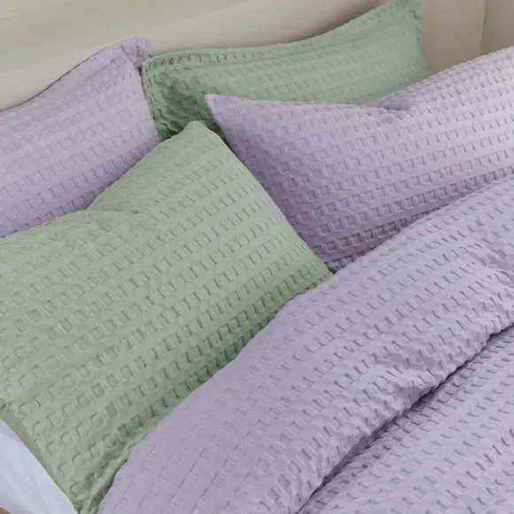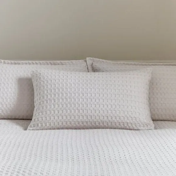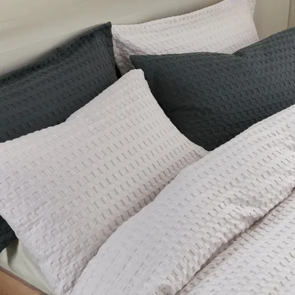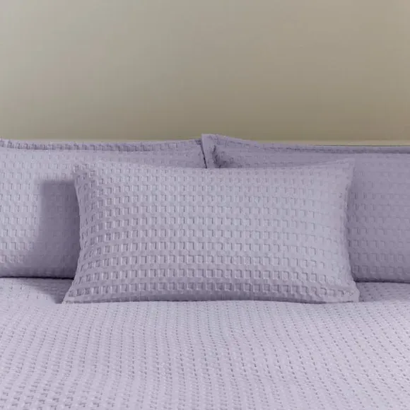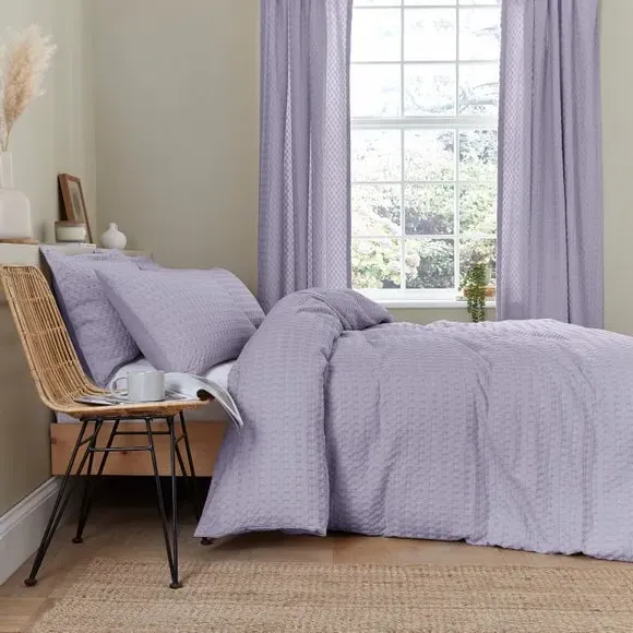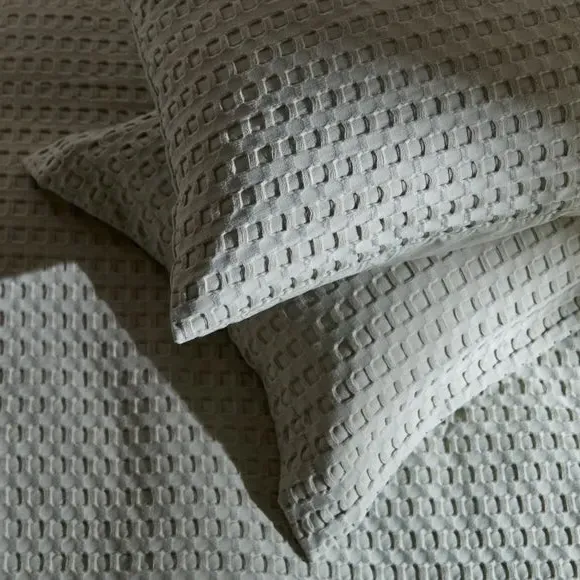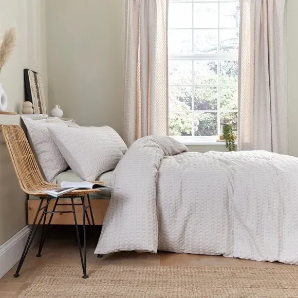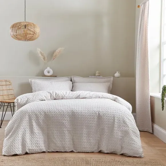 The waffle duvet cover set combines textured design with sustainable comfort, crafted from 60% cotton and 40% recycled polyester. Its secure button closure provides uninterrupted sleep, while the soft cotton blend offers ultimate comfort and cosiness. The set includes matching standard pillowcases for a complete look, and the machine washable fabric ensures easy care and maintenance.