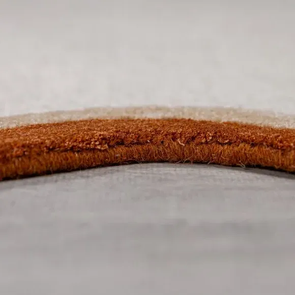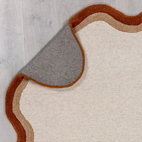 The Wave Border Rug combines striking design with luxurious texture through its handcrafted wool loop construction. Its high-shine viscose border creates stunning contrast against the textured wool foundation, while the distinctive wave pattern adds dynamic movement. The durable wool construction provides a soft, comfortable surface with natural resilience. Regular vacuuming maintains the plush texture and reduces natural fiber shedding.