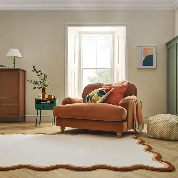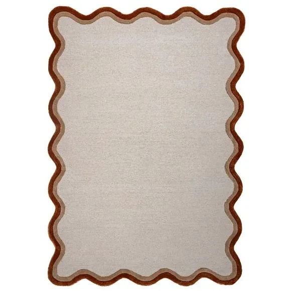* Modern Wave Design* High Shine Viscose Border* Made with Textured Wool The Azure Wave Border Wool Rug combines striking design with luxurious texture. Handcrafted with a wool loop texture, this rug offers a soft, durable foundation, while the viscose border creates a stunning contrast to the textured wool. The distinctive wave border adds a dynamic touch, bringing a sense of movement and sophistication to your space. Azure seamlessly enhances any room, and is a great option for zoning living spaces. The Rug Pictured is: 160cm x 230cm. Care Instructions: Wool is a natural fibre, and shedding is normal for a long period. Unroll your rug and leave for 24 hours during first use. Maintain your Wool rug by vacuuming regularly with a nozzle attachment, this will reduce shedding over time. Cut any loose fibres with scissors, do not pull. For accidental spills blot immediately and spot clean with a damp white cloth, do not rub or over saturate the fibres to keep them soft and plush. Add an anti-slip underneath your rug to prevent slipping. Rotate every few months to prolong the life of your rug.