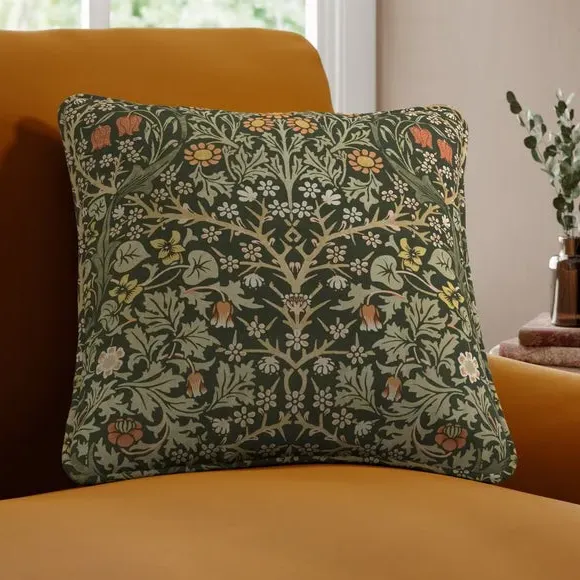 * Exclusive colourways to Dunelm* Sold as a single cushion cover – filling sold separately* Available with a plain or piped edge* Made from recycled polyester The intricate Blackthorn print was originally designed in 1892, the Art Nouveau print features hawthorn, daisies, tulips and foliage block-printed onto paper, lending the design a hand-painted look. Using plant formation as the protagonist, this symmetrical design is integral to William Morris’ work and will lend sublime style to any interior. Whether your home is modern or traditional, the Blackthorn print adds a touch of style and durability, making it an ideal choice for any living space.