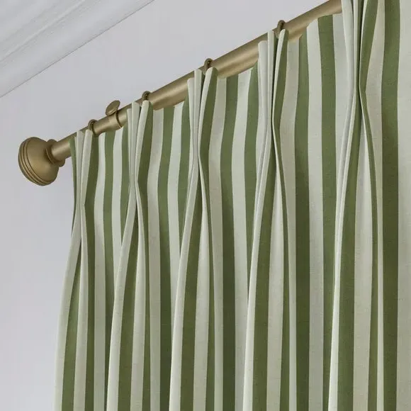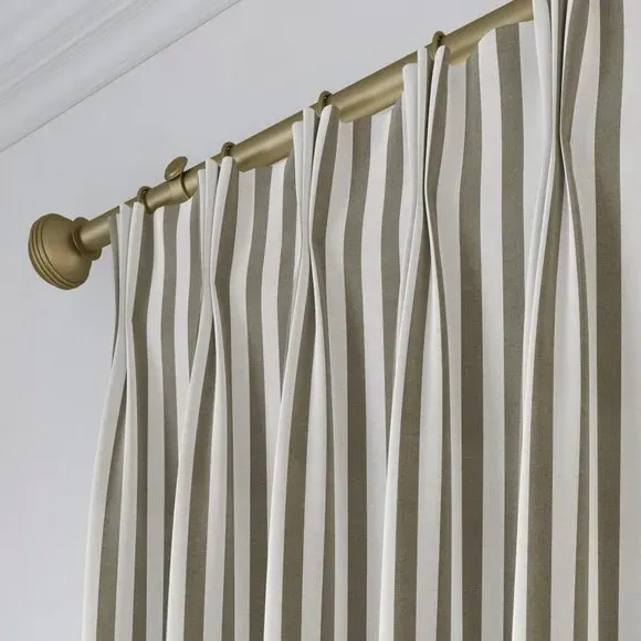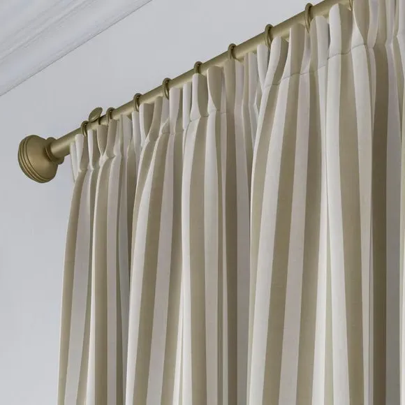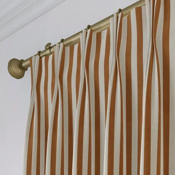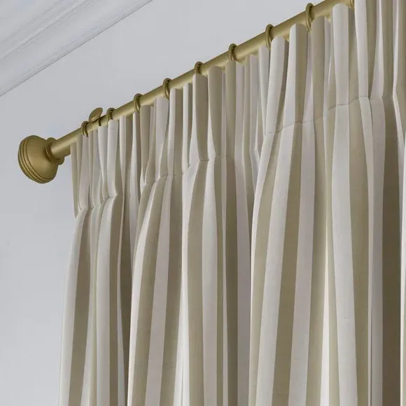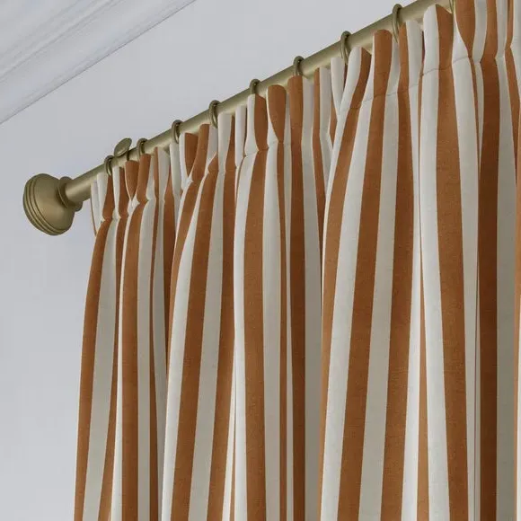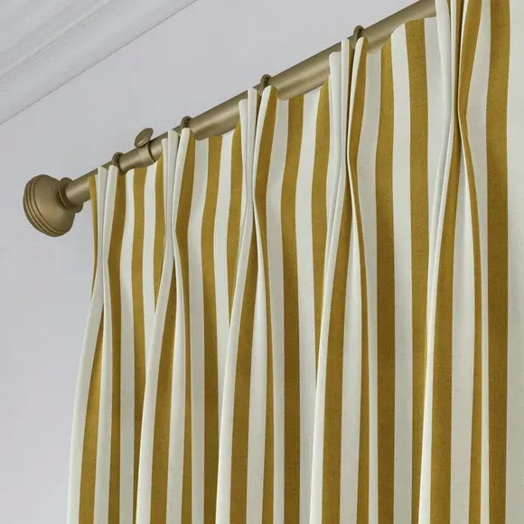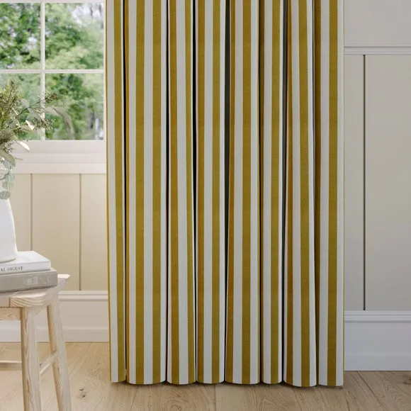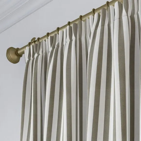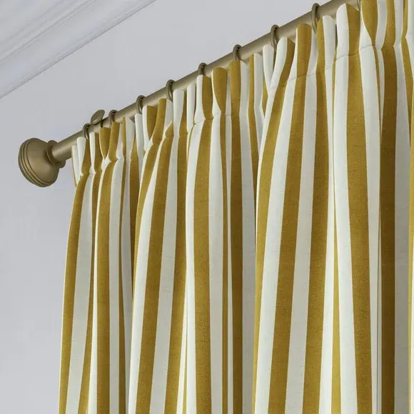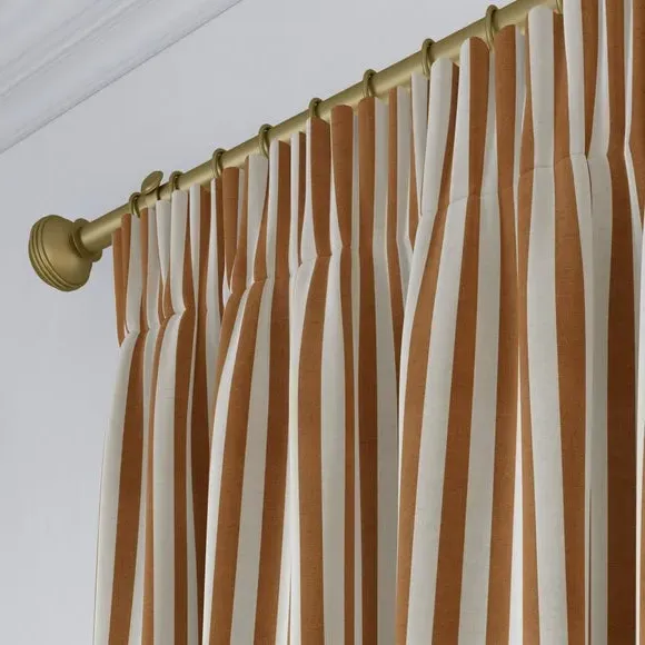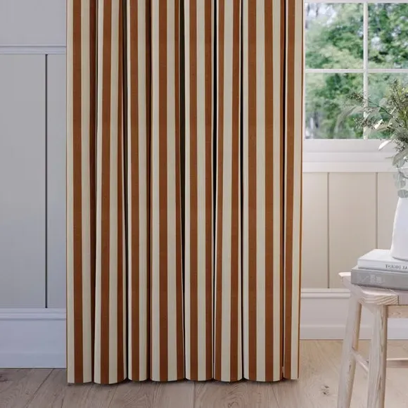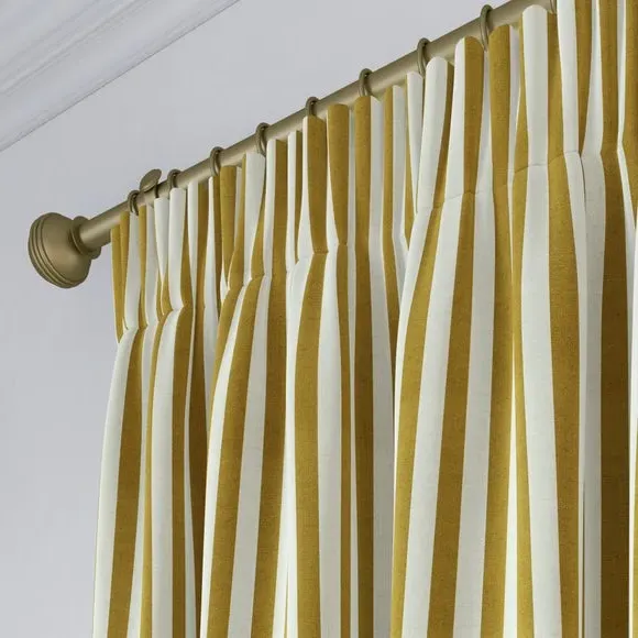 * Robust 100% Cotton composition with a linen-look finish* Trend driven, striped design* Available in a selection of header and lining options* Coordinating Made to Measure and Made to Order items available to purchase separately Inspired by the rustic charm of rural life, Emily Bond brings a cosy, chic aesthetic to her designs. The Elliot range, developed in collaboration with Dunelm, is crafted on a durable 100% cotton base with a linen-look finish. Available in a spectrum of sophisticated colourways, it effortlessly enhances modern interiors. Expertly made from durable and breathable cotton, this range is perfect for infusing your home with timeless sophistication that is built to last. Boasting a luxurious heavy 100% cotton composition, this fabric is designed to maintain its quality and hang neatly without creasing. These made-to-measure curtains come in a selection of eye-catching colourways, ideal for complementing any interior décor scheme. With a variety of header options, including pencil pleat, eyelet, and pinch pleat, you can achieve a perfectly tailored look to suit your space. Choose from regular, blackout, or thermal linings for enhanced functionality, ensuring comfort and privacy. Designed to be hardwearing for busy homes, these curtains offer timeless style and can be paired with coordinating Made to Measure items for a seamless, luxurious finish.**Please note:**You measure for pinch pleat curtains in the same way as pencil pleat curtains.**Please note:** If your measured width is over 124cm your curtains will come with a fabric join to provide the full width required.