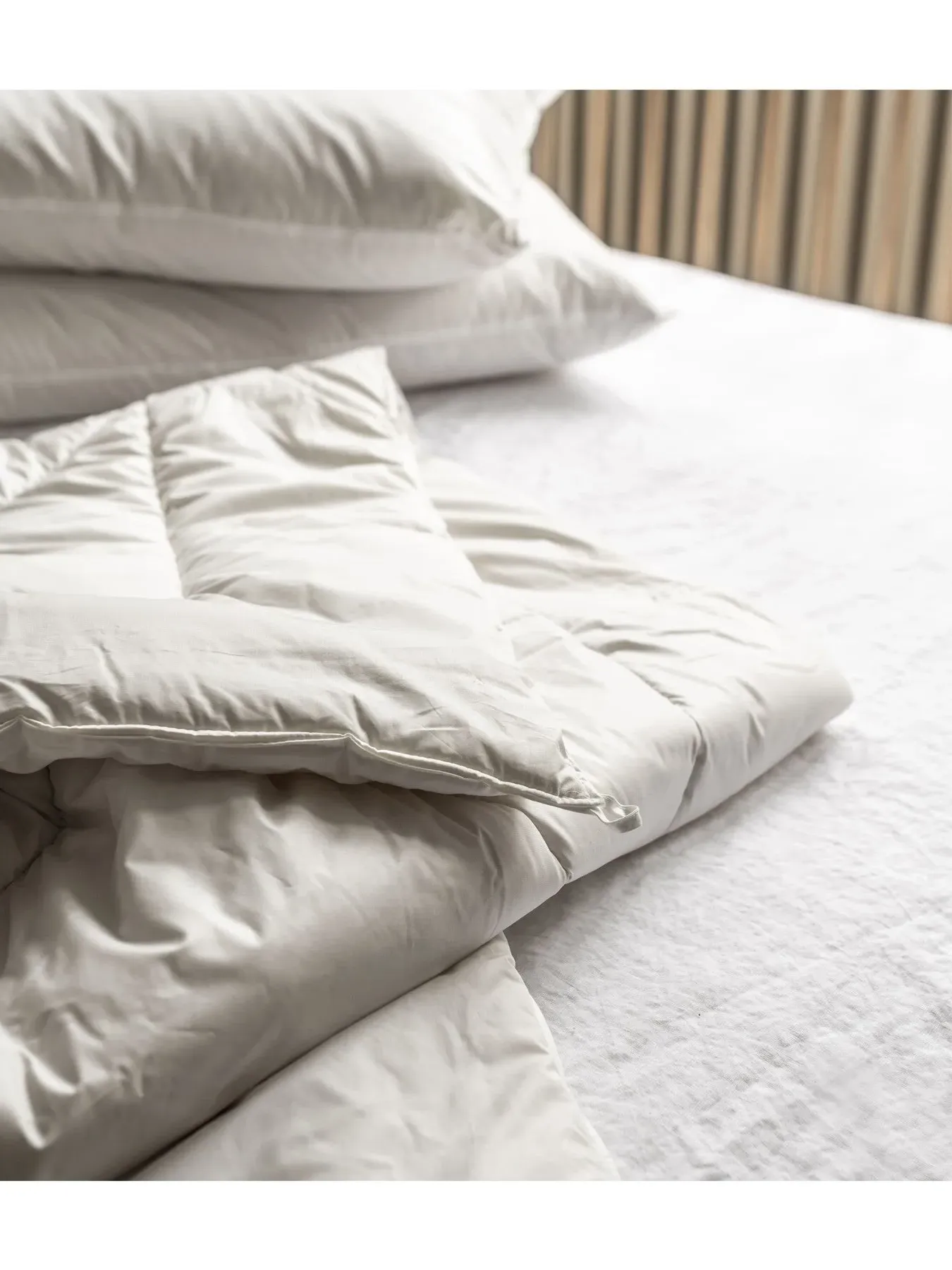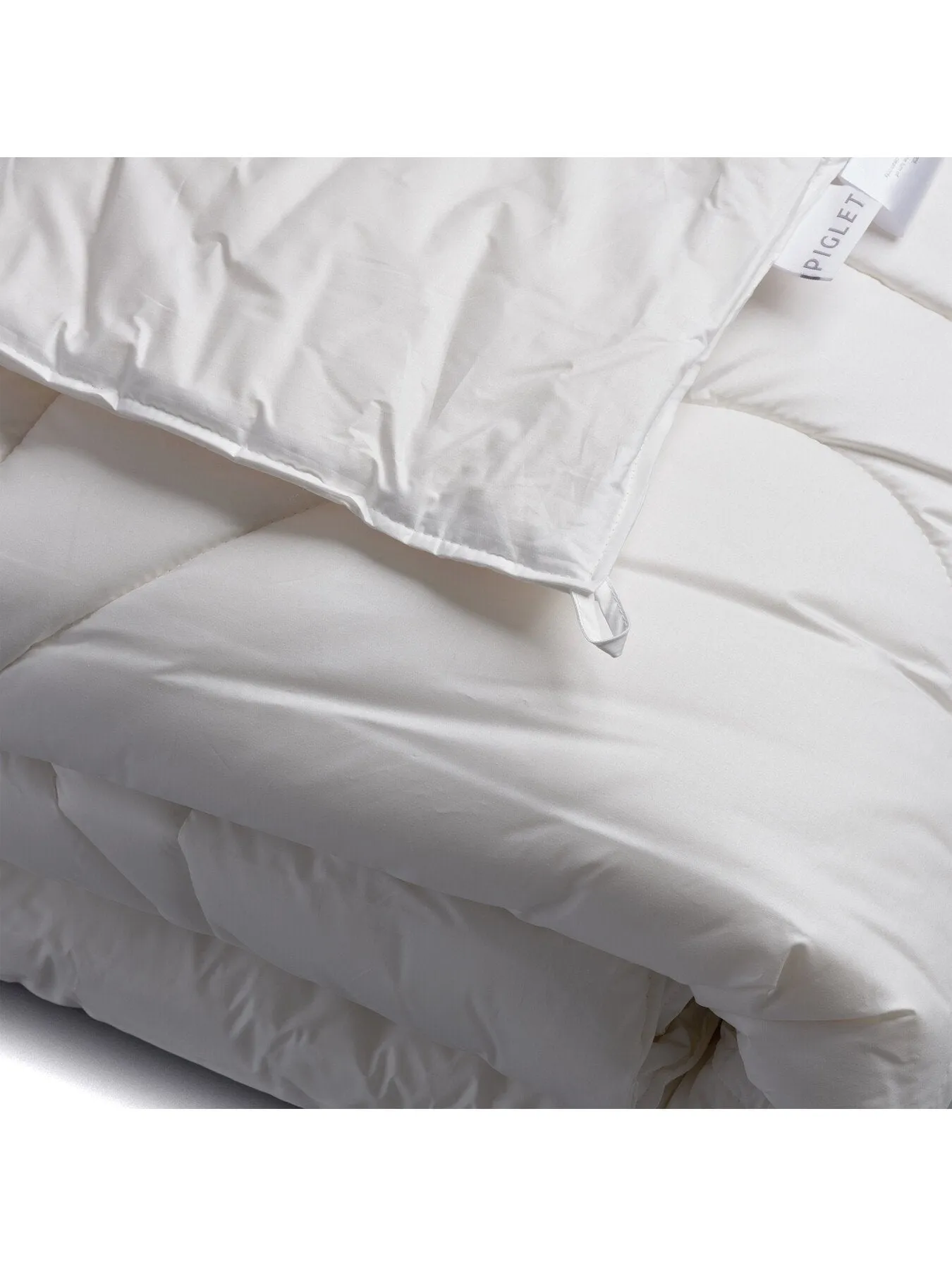 Made for all year round natural comfort, our organic duvets are made by hand and filled with carded Merino sheep's wool which is encased in 100% organic cotton. These materials have been specially selected to help regulate your temperature, allowing for a restful night's sleep. Our merino wool duvet inserts are available in both a warmer option for the colder months and a lighter option for summer. | Piglet in Bed Wool Duvet Medium Weight in White, Cotton/Wool, Size Double | Piglet in Bed Wool Duvet Medium Weight in White, Cotton/Wool, Size Double