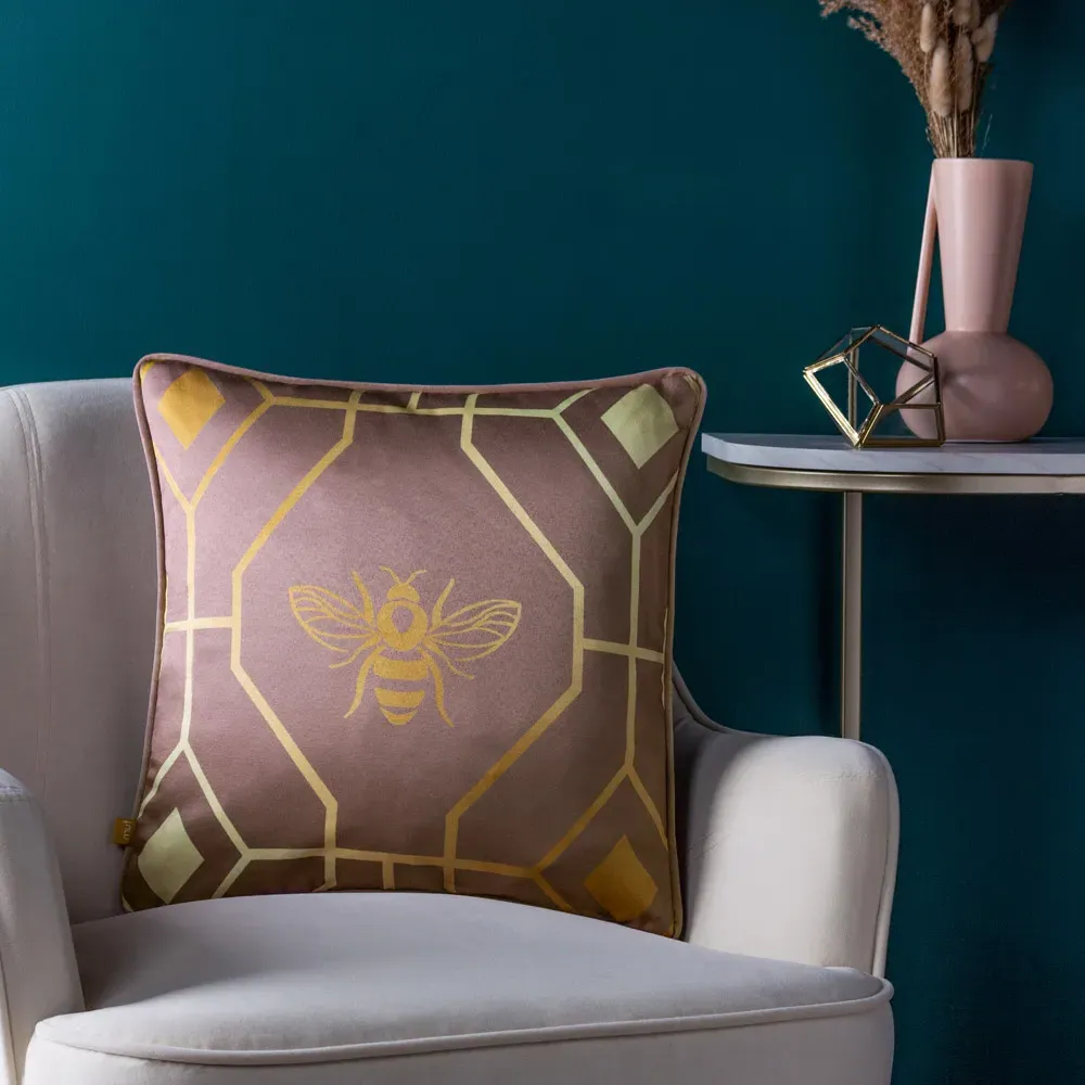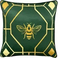 The duvet set features a geometric bee design with soft gold accents on an eau de nil background. Its polycotton construction provides comfort and durability, while the reverse displays a coordinating bee pattern for versatile styling. The clear button closure ensures easy duvet removal and secure fitting.
