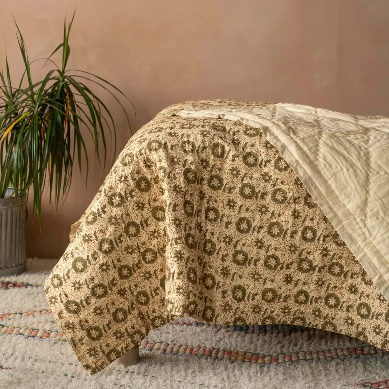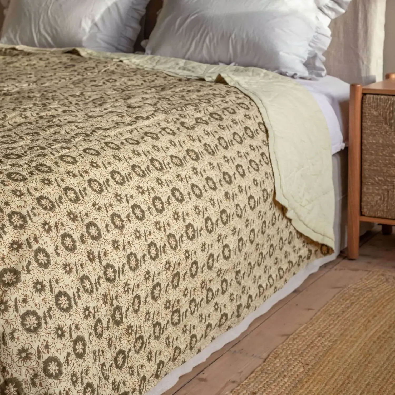 This reversible king-size quilt offers double the styling opportunities. One side features a calming blue & white garden print, complemented by a matching blue striped reverse and bound edges. Perfect for adding an extra layer during the colder months or a light cover on its own during the summer. L240 x W220cm. Printed onto cotton with a 220gsm quilted filling. Designed to fit a king sized bed. Dry Clean Only. Due to the nature of this product, colour, pattern and finish may vary.
