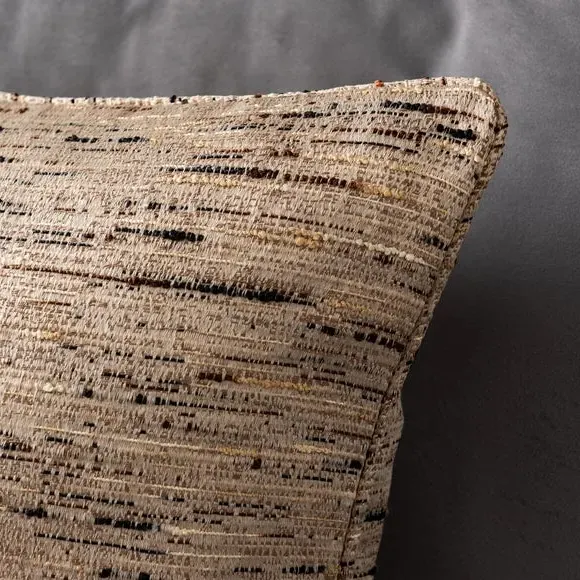 The square cushion offers luxurious comfort with its textural fabric construction and feather filling. Its piped edges provide structured definition, while the zip fastening allows for easy maintenance. The natural tone complements various decor styles, and the premium feather interior ensures lasting softness and support.