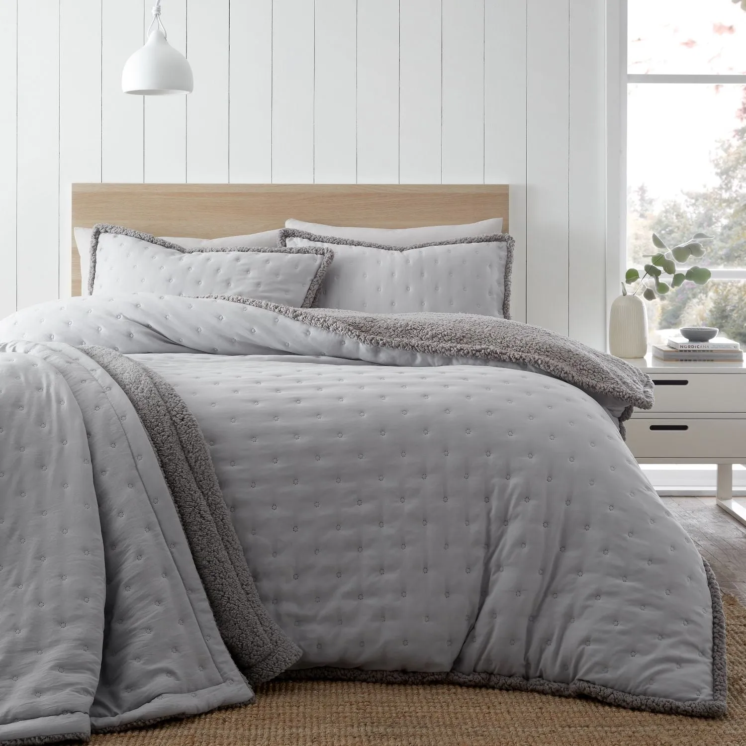 The duvet set combines comfort with its check pattern design, featuring a grey colorway that adds classic appeal. Its sherpa fleece reverse provides exceptional warmth and softness, while the timeless check pattern brings enduring style. The plush sherpa construction offers cozy comfort during colder months, and the fleece material ensures lasting durability.
