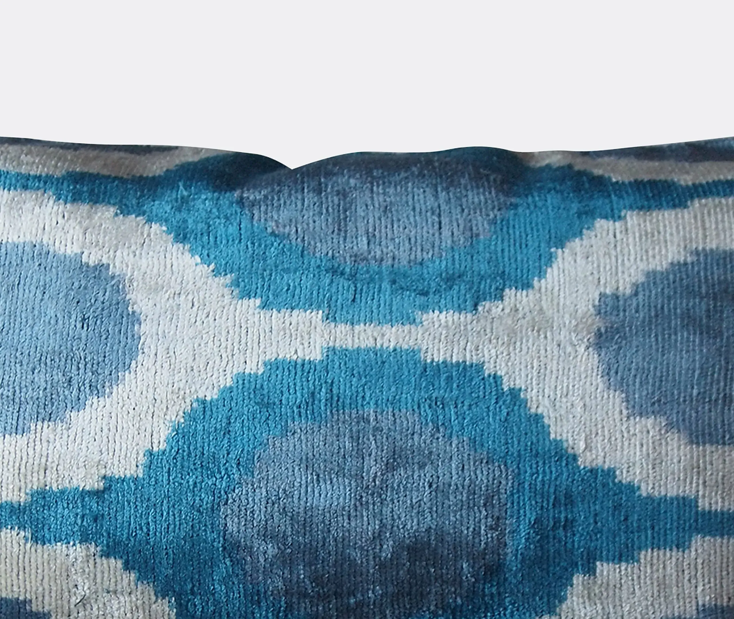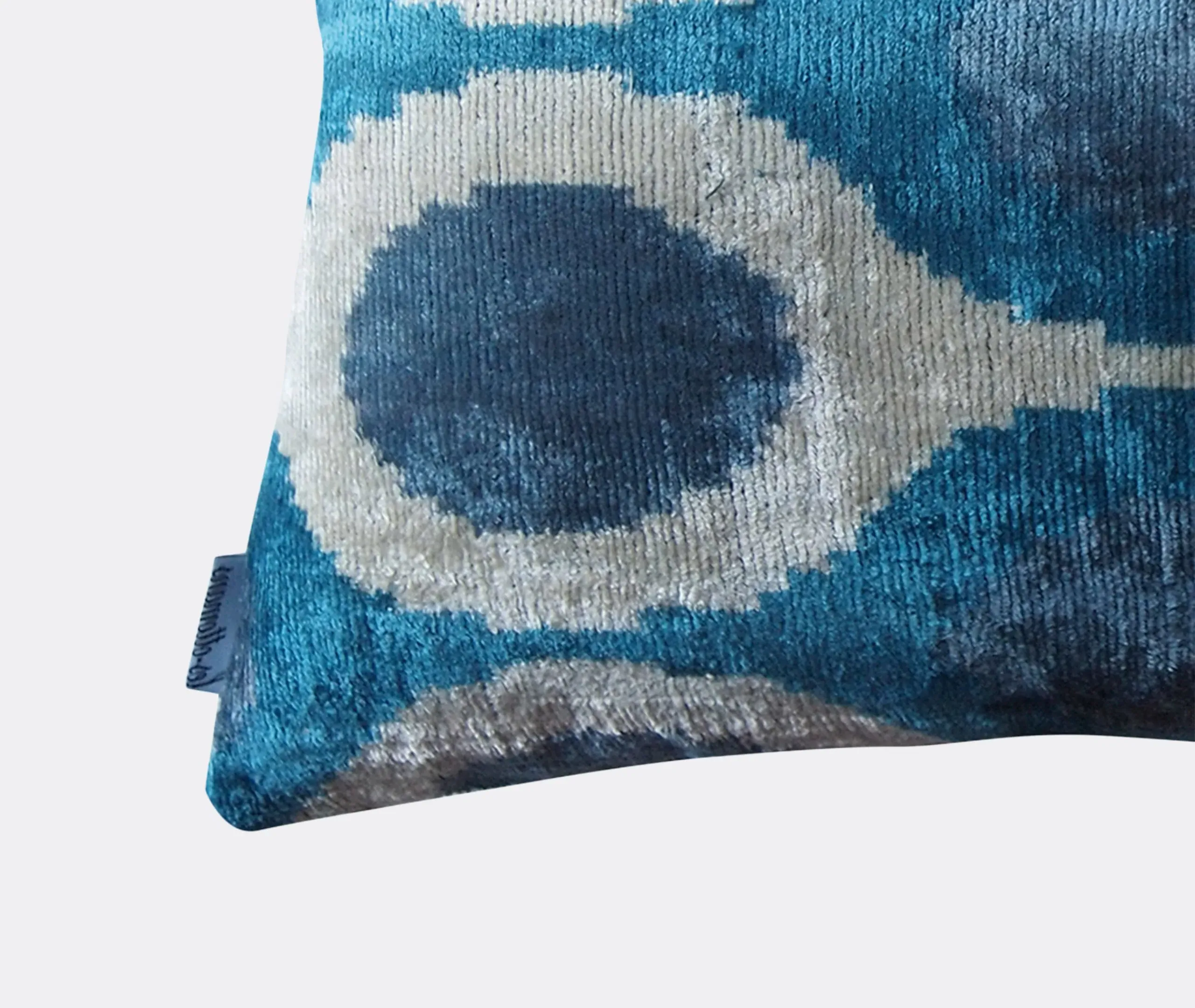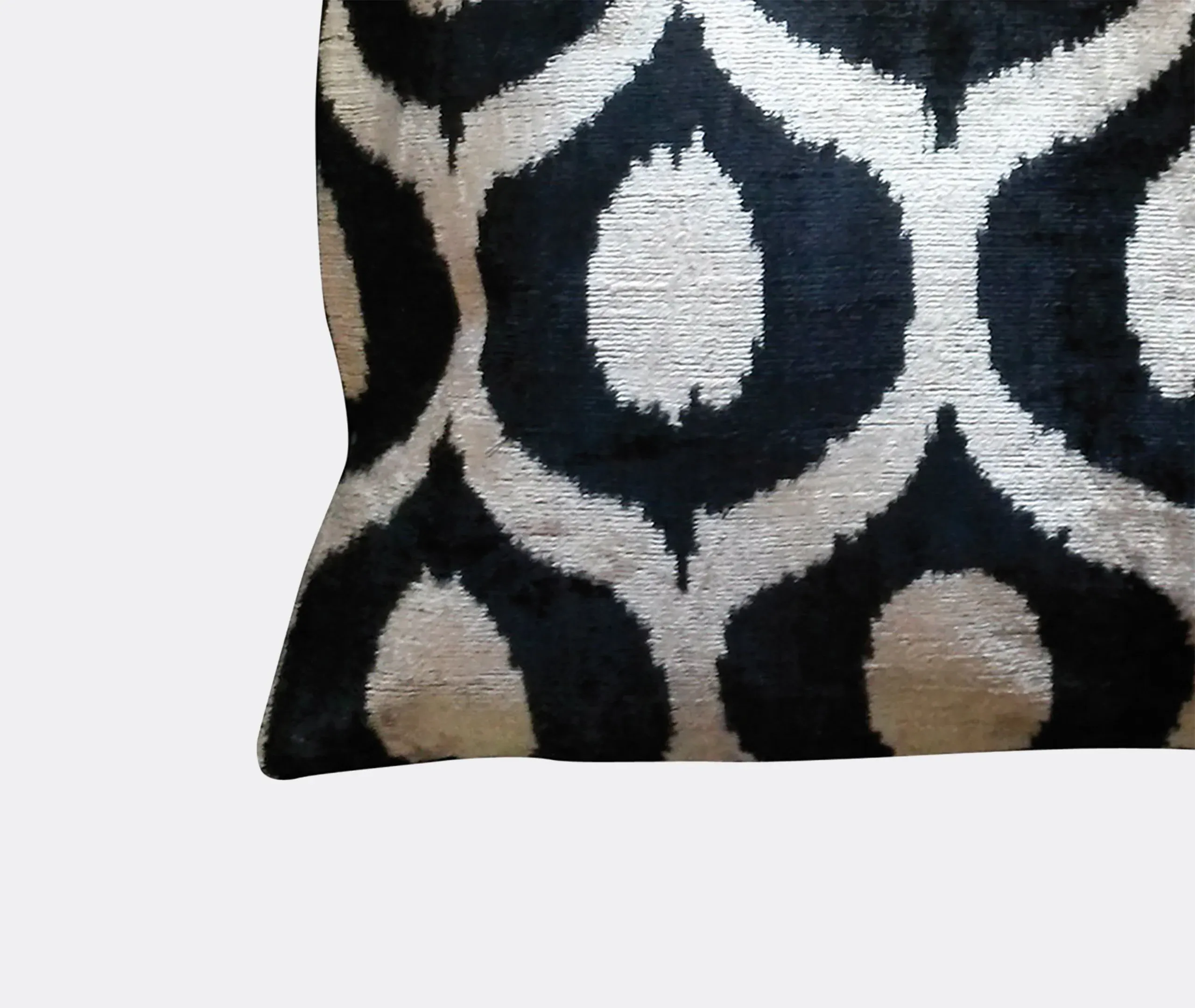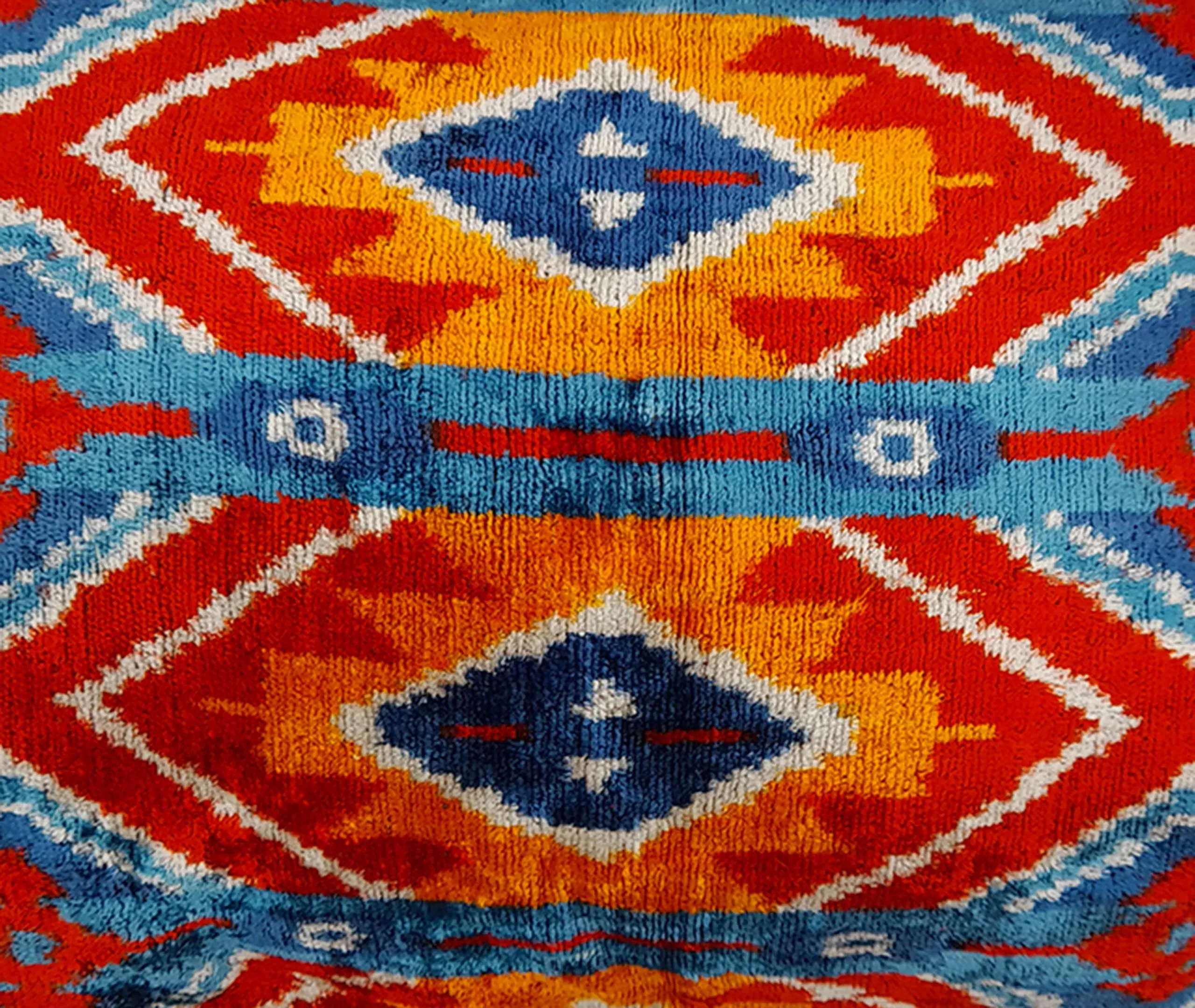 The cushion features luxurious silk velvet construction with an abstract botanical motif in rich pink, purple and green tones. Its handcrafted surface displays ornate floral patterns, while the sumptuous velvet material adds warmth and texture. The vibrant multicolor design complements other pieces in the collection, and the traditional craftsmanship ensures lasting quality.