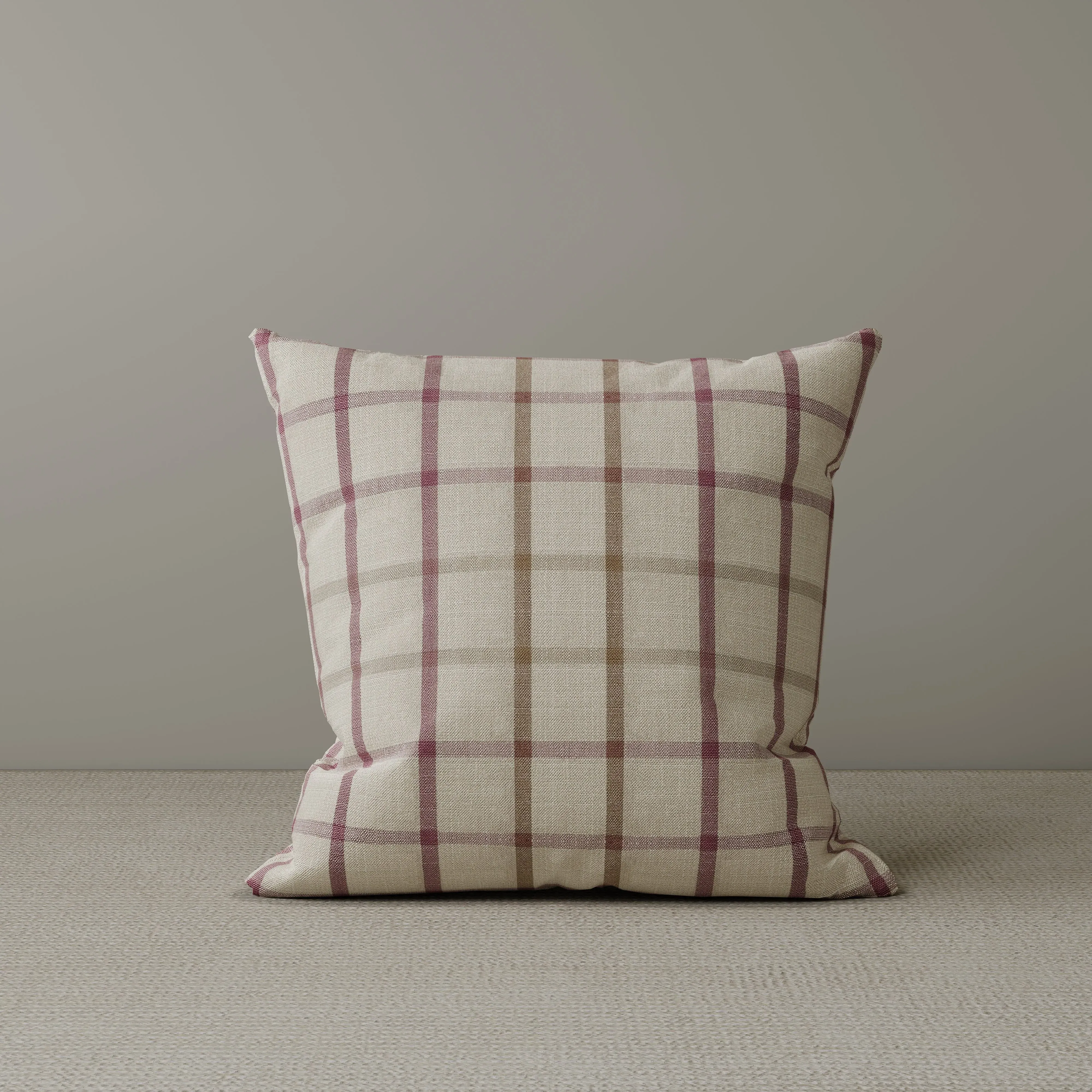 The Cottonfy cushion offers comfort with its balanced 50% feather and 50% silk cotton filling, featuring a brown checkered pattern. Its removable cover provides easy maintenance with a discreet zip for machine washing, while the cotton linen fabric adds durability. The square design suits various seating arrangements, and the eco-friendly materials ensure lasting shape and softness. W45 x D45 cm.