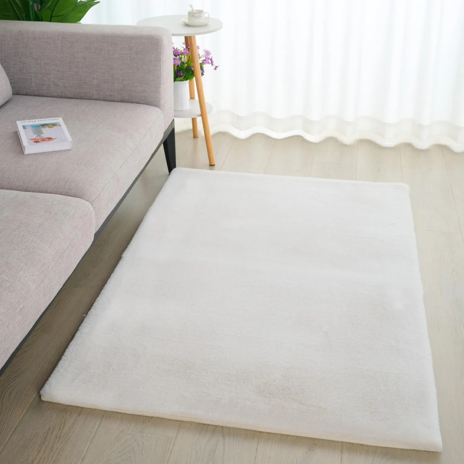The Lux Rabbit Faux Fur Rug combines plush comfort with practical design through its smooth, high-quality pile. Its grey cotton backing provides reliable support, while the soft faux fur surface delivers warmth and texture. The construction suits placement over various flooring types for added depth and comfort.