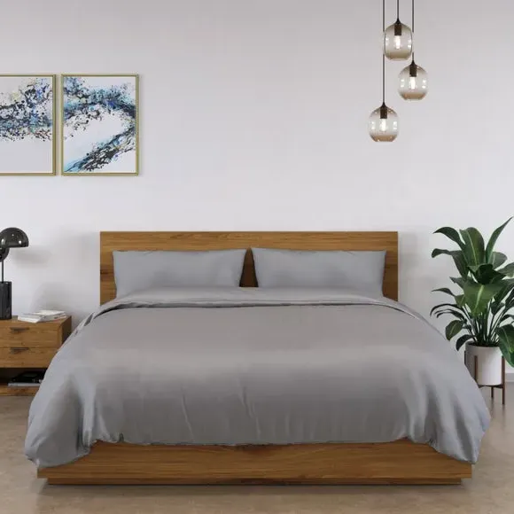 The bamboo bedding set offers luxurious comfort with its 100% organically grown viscose bamboo construction and 320 thread count. Its breathable fabric maintains regular body temperature throughout the night, while the silky smooth texture provides twice the softness of cotton. The anti-allergy properties prevent dust mites and bacteria buildup, making it suitable for sensitive skin. Complete with pillowcases, fitted sheet, and duvet cover featuring bamboo button fastening.