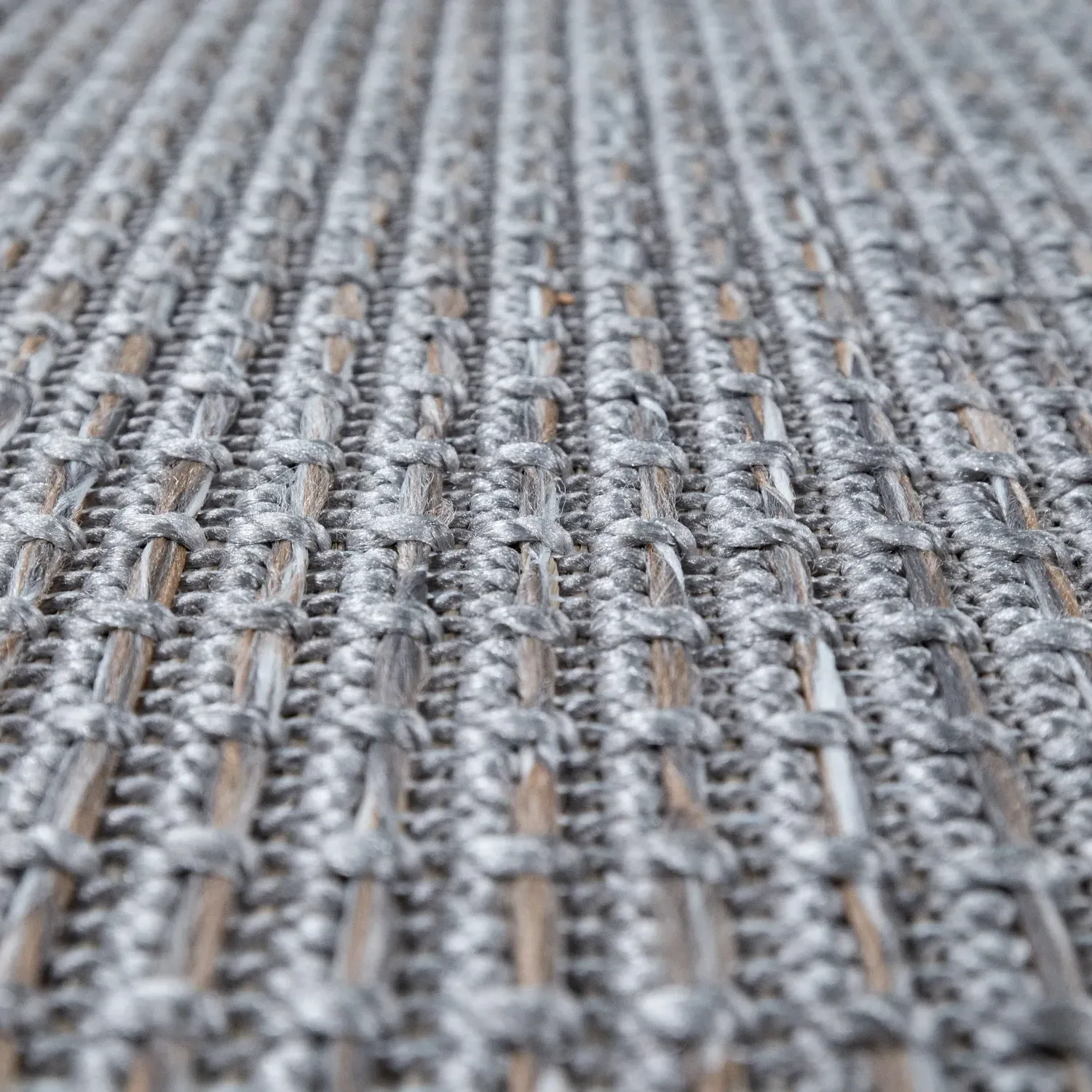 The Becca rug features flatweave construction that combines indoor comfort with outdoor durability. Its weather-resistant material provides long-lasting use, while the easy-care properties ensure simple cleaning and maintenance. The rug offers natural color variations framed by a gray border, and the flatweave technique delivers both style and practicality.