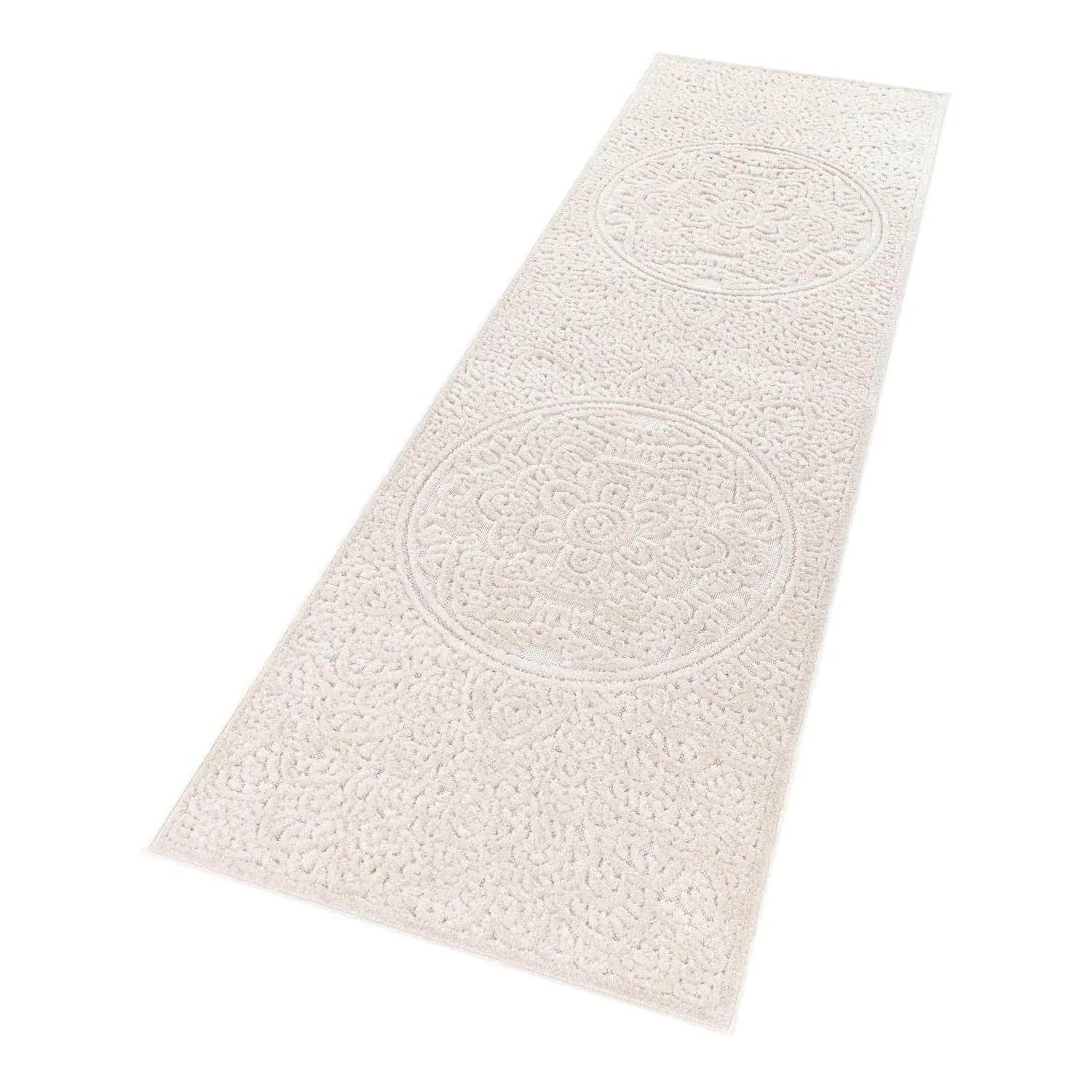 Discover a new dimension of coziness with this modern rug. Whether indoors or outdoors, its chic design transforms any area into a stylish oasis of comfort. Its subtle cream color makes it the perfect partner for the trendiest interior styles and a real eye-catcher. The special highlight: the exciting 3D effect makes the geometric pattern stand out despite the single-color design. But the best part is that it not only looks good, but is also particularly durable. Perfect for areas that are heavily used. And don't worry, cleaning is a breeze. So what are you waiting for? Turn your living or outdoor area into a stylish oasis of comfort with this modern rug.