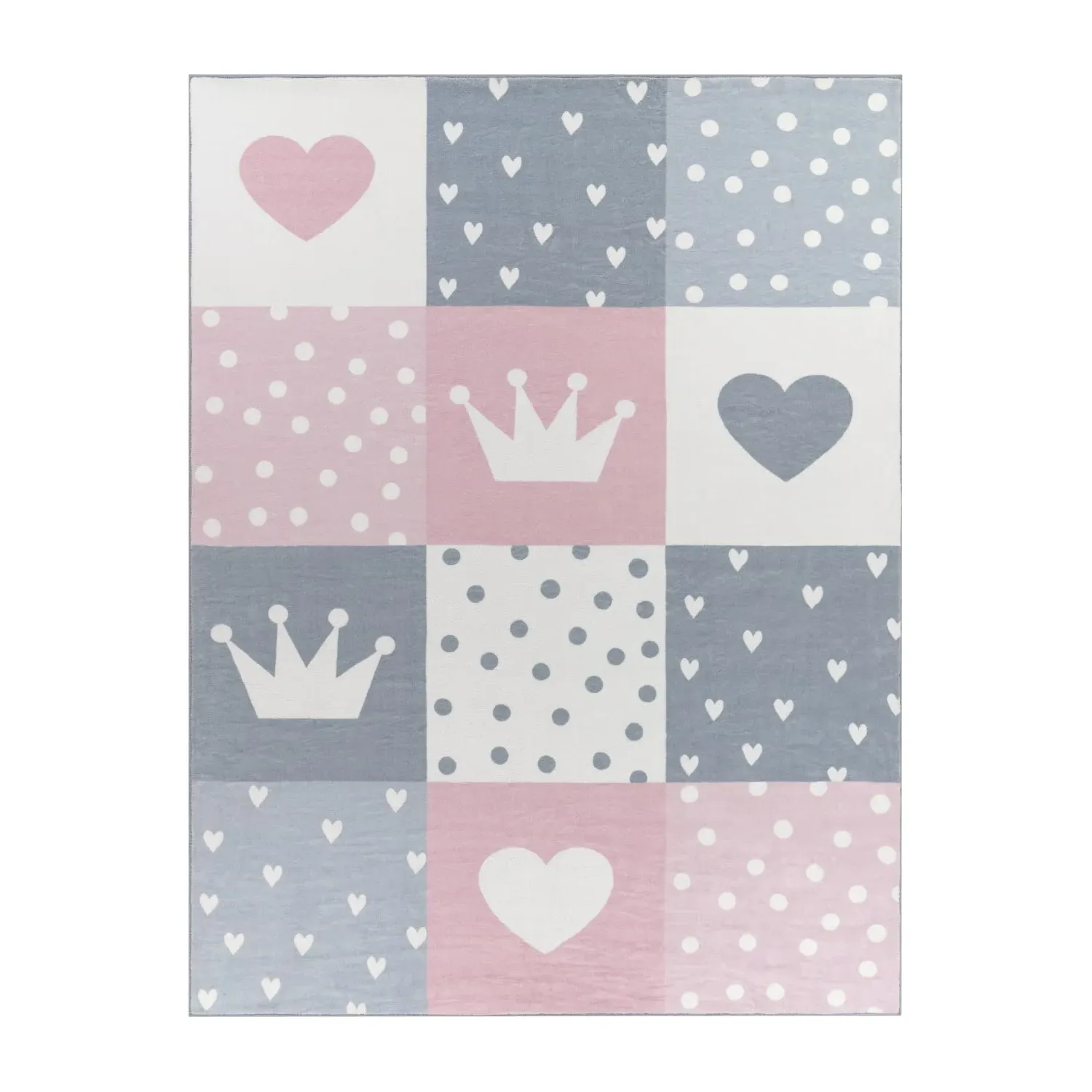 Add color and fun to your child's room with these charming children's rugs. With their vibrant color spectrum, from bright pink to soft blue to exciting purple, they create a cozy atmosphere for playing and relaxing. The diverse patterns and shapes, from dancing dots to cute hearts, inspire excitement and stimulate the imagination. Large hearts and princess crowns in some squares invite dreaming of fairytale worlds. Fun hopscotch games become a breeze with the arrangement of squares. These rugs are not only cuddly soft, but also durable and easy to clean - perfect for everyday life with children. And thanks to the non-slip backing, your little ones can play to their heart's content without any risk of slipping. With these rugs, you create a space where your children can feel completely at ease and playfully explore their world.