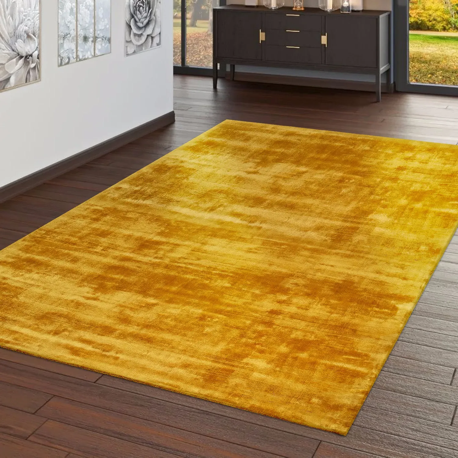 Let yourself be enchanted by this dreamy rug! Its simple elegance shines with subtle color shades between silver and beige, giving it a unique charm. The silky sheen is a true feast for the eyes and enhances the noble look. The carefully bound edges provide additional shape stability and complete the overall picture. This rug is not only a real eye-catcher, but also easy to care for and durable. Its subtle color scheme makes it the perfect all-rounder for any room - whether it's the living room, dining room, bedroom, or office. And the best part: with this rug, you can perfectly showcase your personal style. Pair it with colorful accessories and show that you have a knack for interior design trends. Whether it's modern design or playful wooden furniture - this rug adds the finishing touch to any decorating style. Be inspired and discover the endless possibilities!