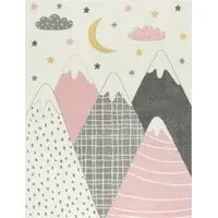 The Ninique kids rug offers an adventurous playground with its cute llama motif set against soft grey tones and colorful accents. Its desert and mountain journey design features sweet cacti that invite dreaming and exploring, while the durable construction withstands little mishaps during playtime. The rug provides easy care maintenance and fits seamlessly into any child's room for both boys and girls.