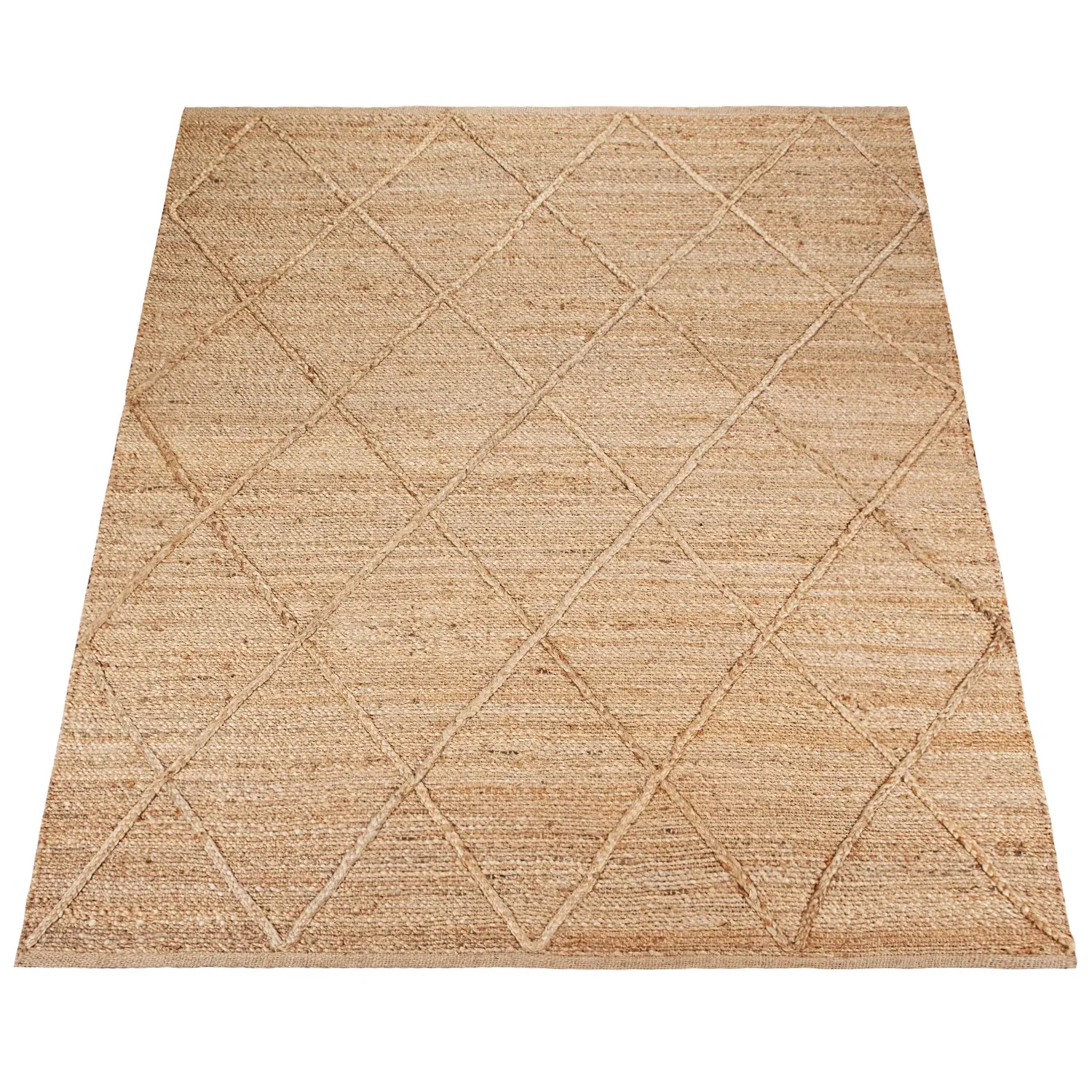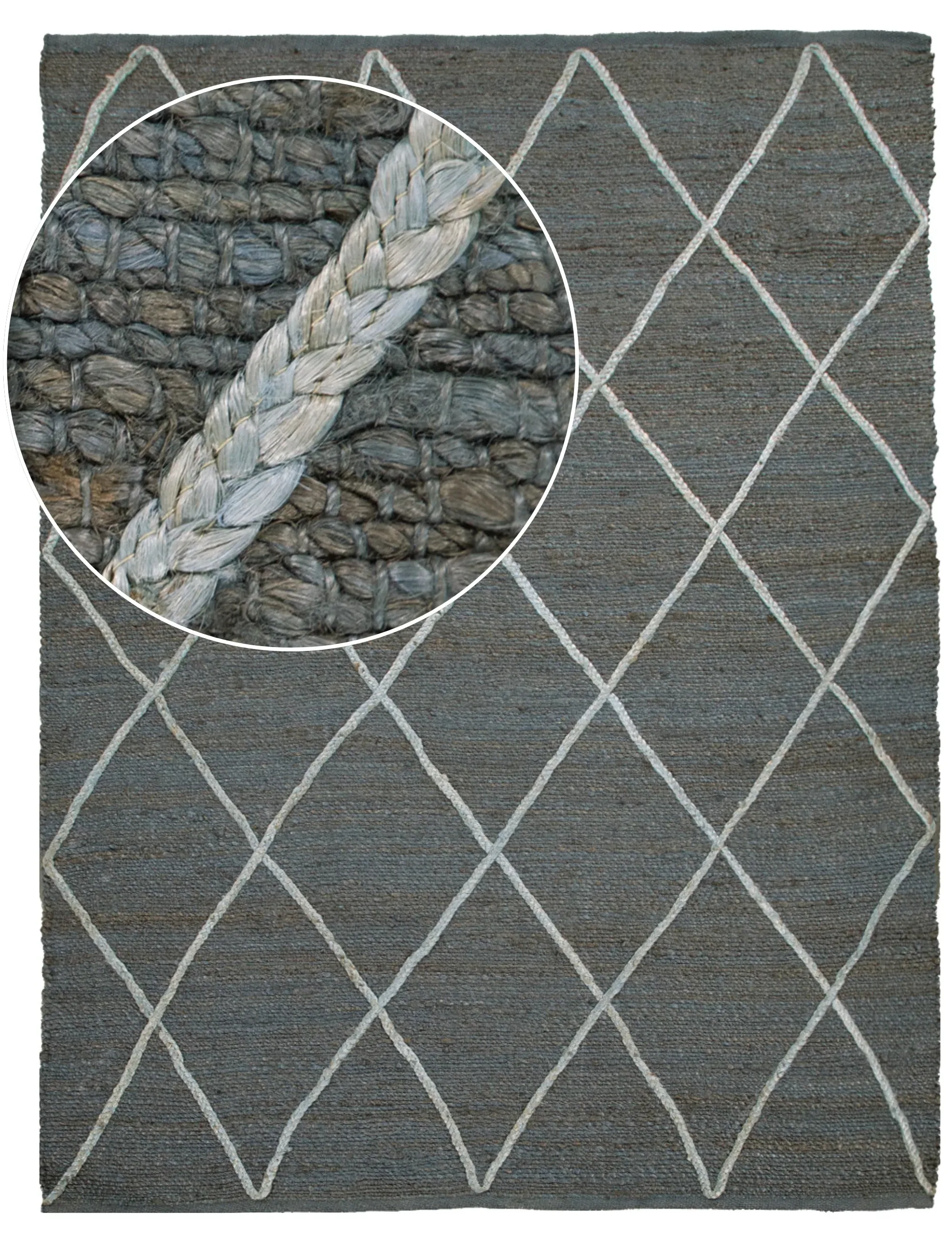 The Sakira rug offers natural comfort with its handcrafted jute construction and subtle diamond pattern. Its flatweave design provides durability for high-traffic areas, while the natural jute fibers add texture underfoot. The anthracite coloring suits various decor styles, and the careful craftsmanship ensures long-lasting quality.