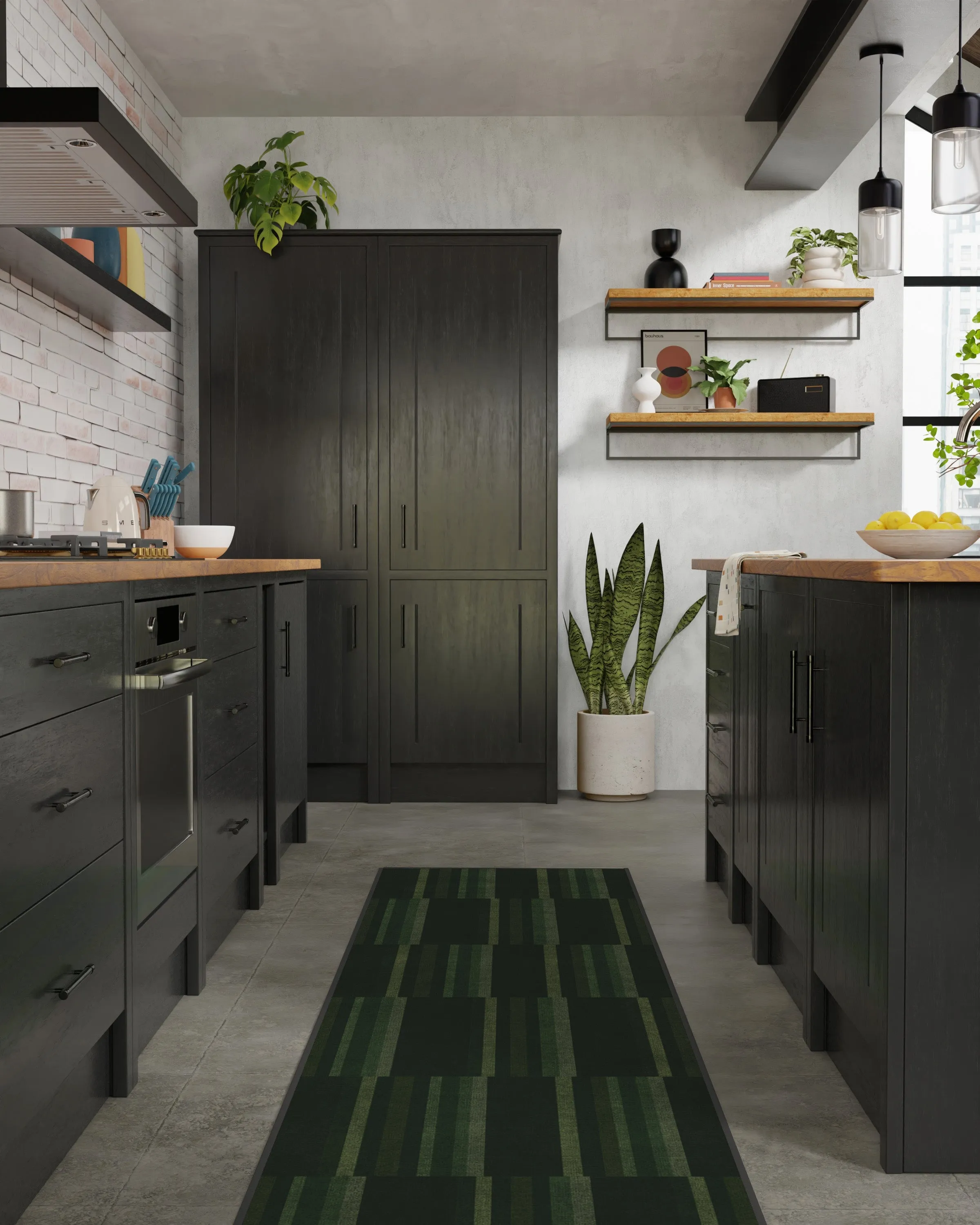 Embrace retro-modern artistry with our Michael Michalsky London Olive & Green Rug. Inspired by the nostalgic charm of London Underground seat covers and infused with a modern cubist twist, this geometric design balances tonal green hues to create a unique aesthetic. A perfect blend of vintage and contemporary elements, it's sure to add character and a hint of avant-garde style to any room. Water-resistant, stain-resistant, and machine-washable. Rug colours may vary slightly according to your device and the lighting in your space. 60x90 | Machine Washable Area Rug | Kid & Pet Friendly | Indoor Rugs | London Olive & Green Flatwoven Rug by Michael Michalsky | Ruggable