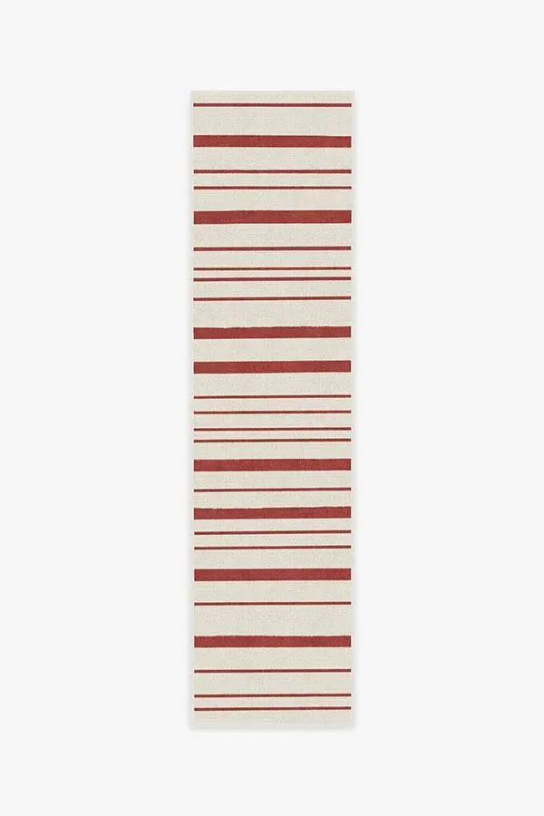 Ring in the holidays with our Hudson Stripe Red Rug. Featuring a mix of bold and fine lines, tinted in candy cane hues of farmhouse red and pearl, this season-perfect rug lends a festive pop of colour and versatility to your home's decor. Made from our water-resistant, stain-resistant, and machine-washable low-pile Chenille material. 60x90 | Machine Washable Area Rug | Kid & Pet Friendly | Indoor Rugs | Hudson Stripe Red Flatwoven Rug | Ruggable