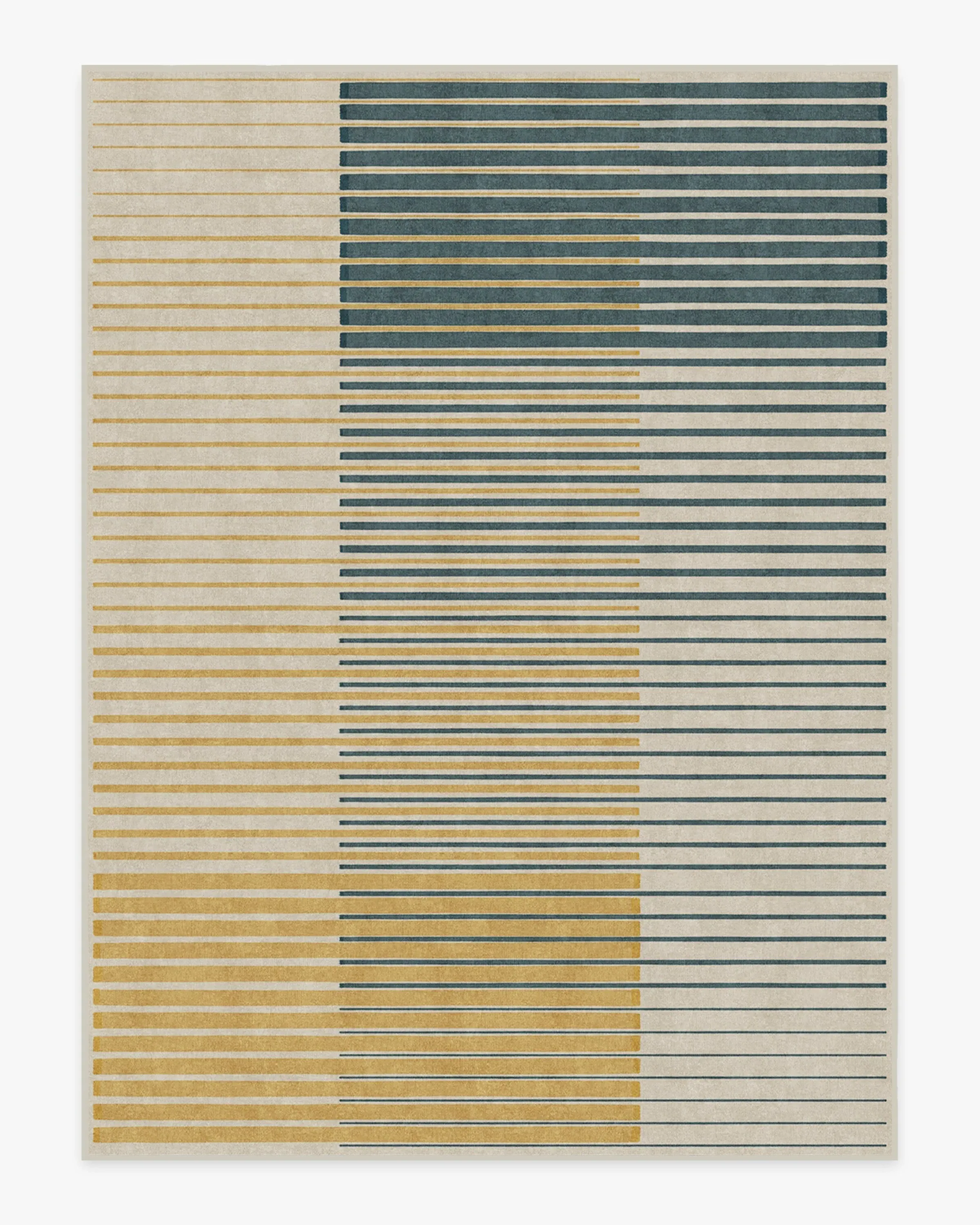 This Gradasi Teal Quartz Rug is a great way to infuse a unique pattern and color into your home. Featuring overlapping teal grey and coriander lines, drawn in various weights to mimic an ombre effect, this abstract art-inspired rug perfectly complements a modern minimalistic space. 60x90 | Machine Washable Area Rug | Kid & Pet Friendly | Indoor Rugs | Gradasi Teal Quartz Rug | Ruggable
