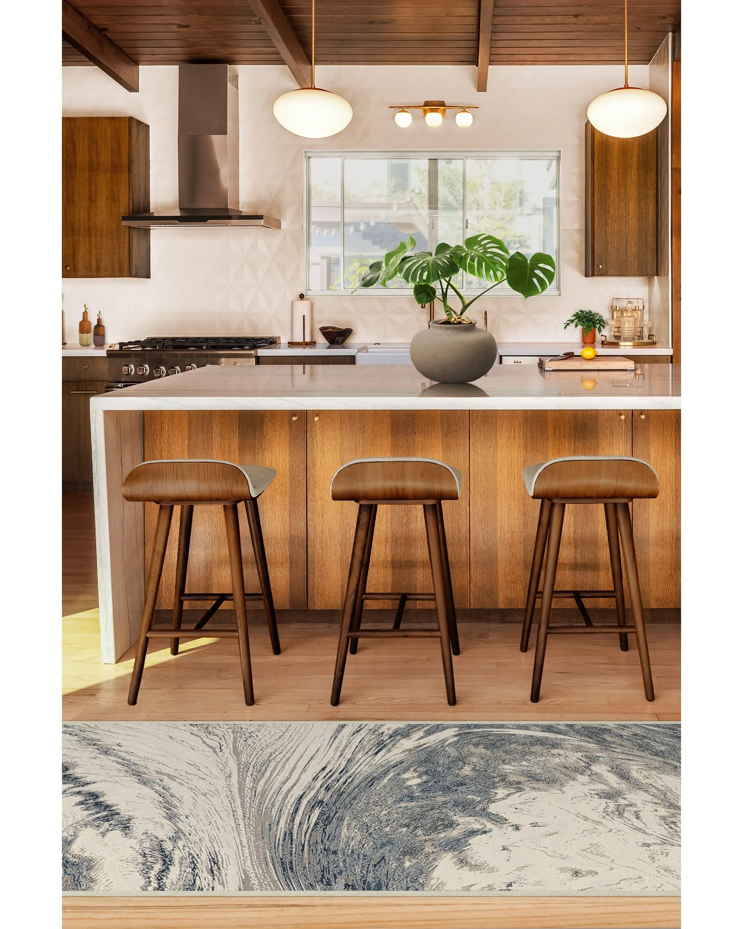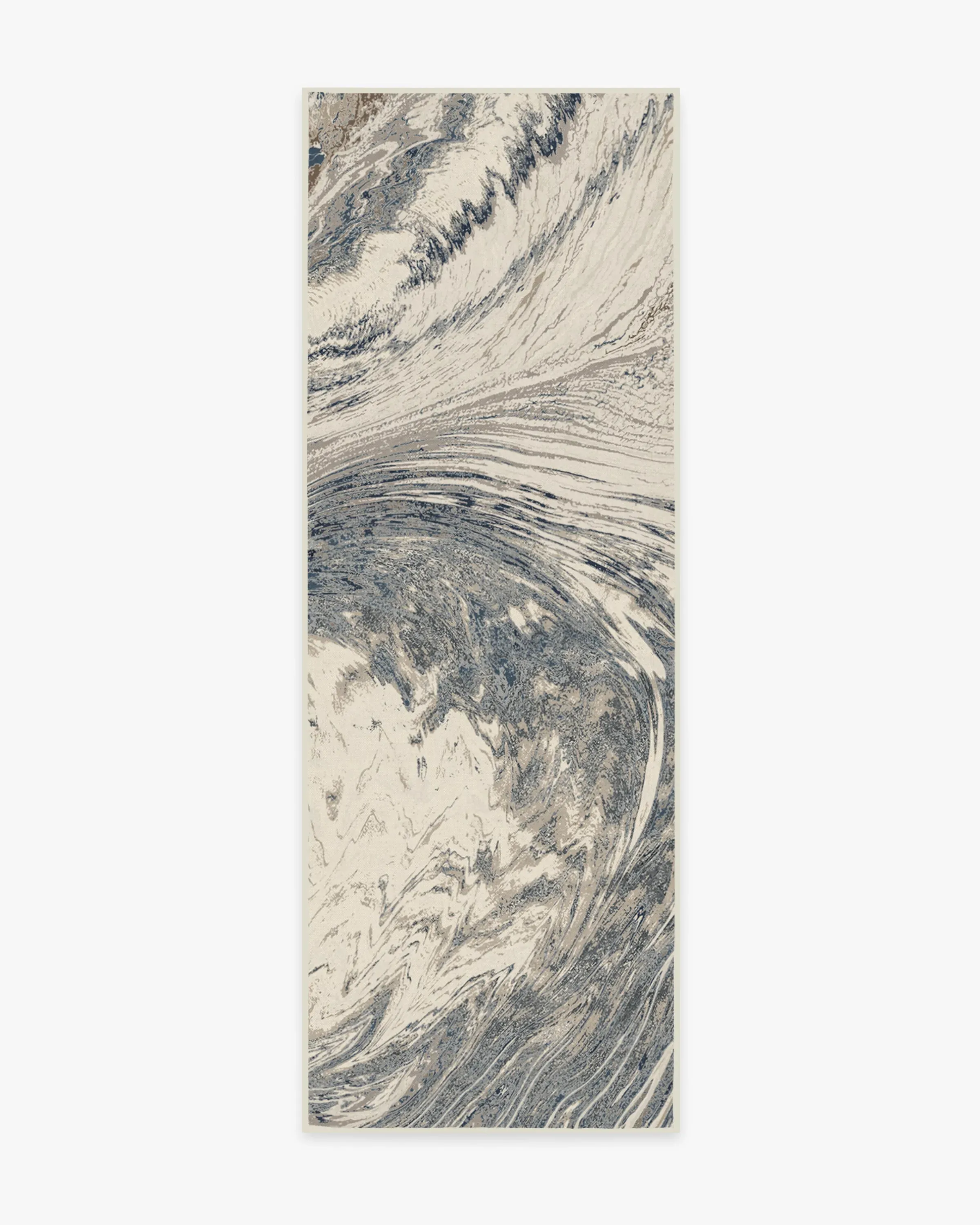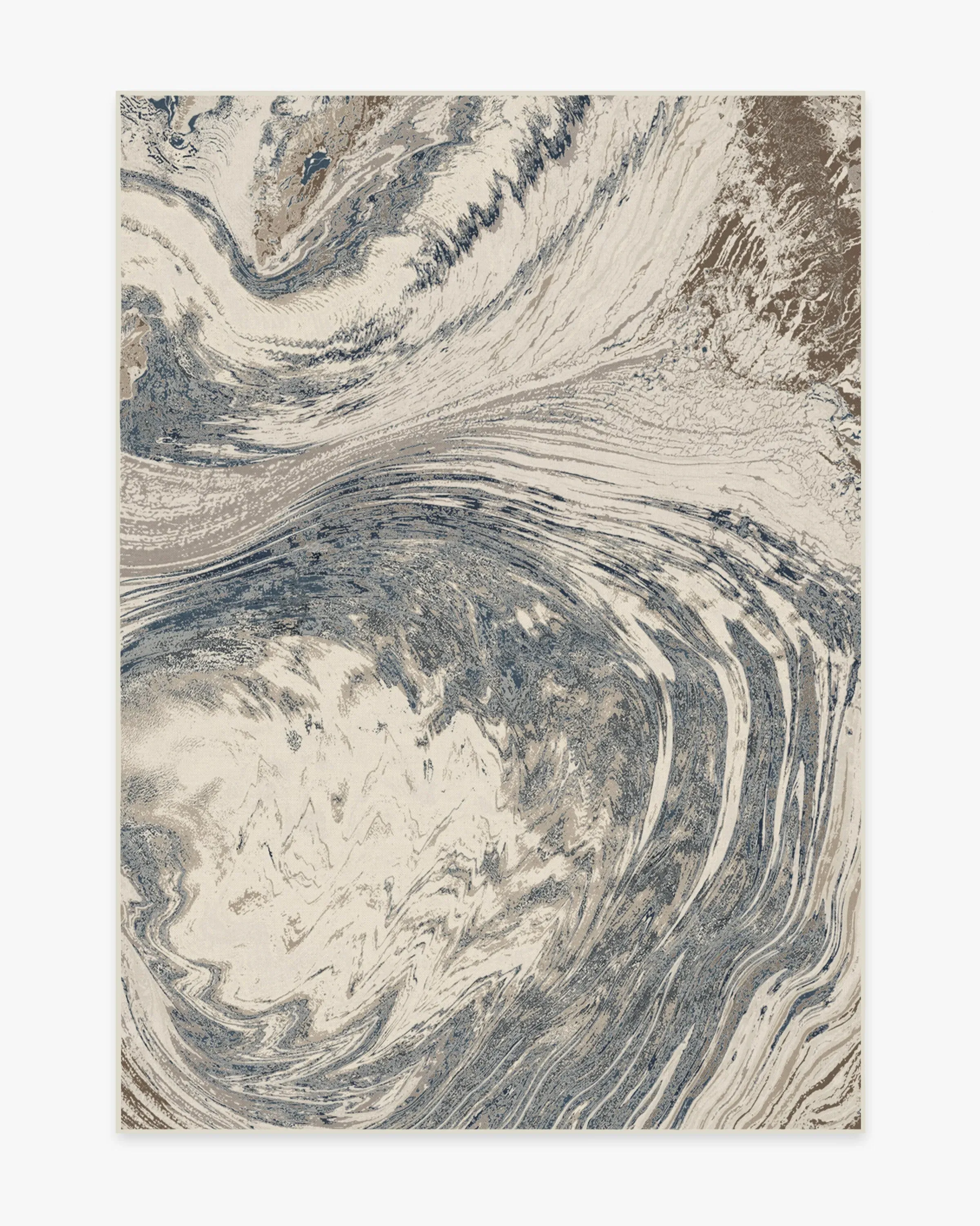 Enjoy a view inspired by the brilliant Malaspina Glacier in Southeastern Alaska with our Malaspina Dusk Blue Rug. Featuring oceanic blues mixed with earth tones on a light cream background, the natural textures of this rug emit an organic, flowing movement around the canvas creating depth and dimension with a rich quality that brings this beautiful aerial image to life. Made from our water-resistant, stain-resistant, and machine-washable low-pile Classic material. Our Classic Rugs are woven from a velvety smooth chenille yarn. Rug colours may vary slightly according to your device and the lighting in your space. 60x90 | Machine Washable Area Rug | Kid & Pet Friendly | Indoor Rugs | Malaspina Dusk Blue Flatwoven Rug | Ruggable