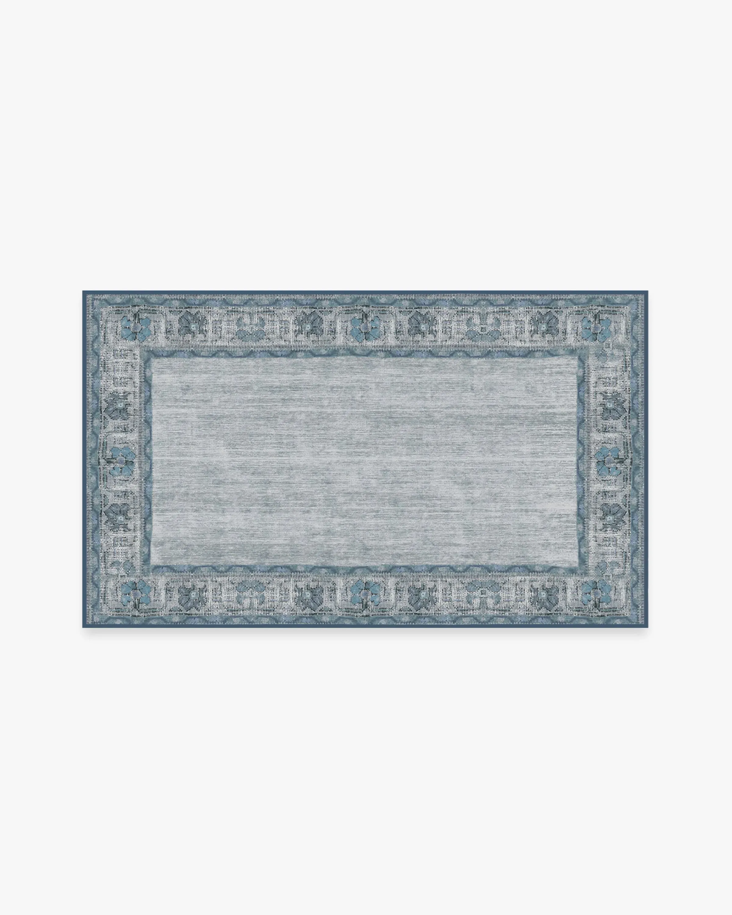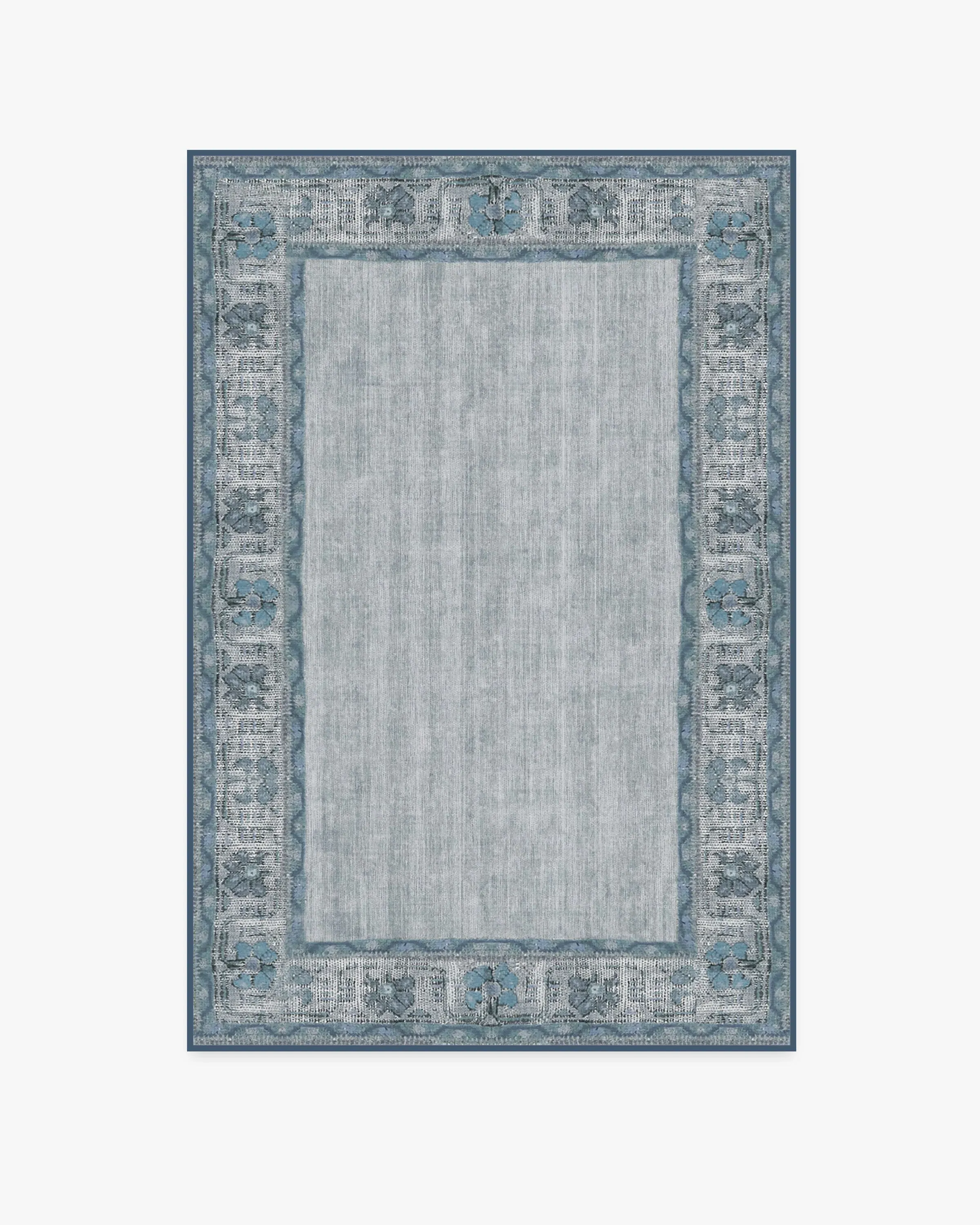 Add a touch of classic style to your home with our Vintage Daisy Bordered Blue rug. This blue vintage rug features a rich blend of slate blue, grey, and azul with an antiqued and Bohemian vibe. Enrich any room of your cottage, contemporary, traditional or shabby chic home interior with this timeless floor decor. 60x90 | Machine Washable Area Rug | Kid & Pet Friendly | Indoor Rugs | Vintage Daisy Bordered Blue Flatwoven Rug | Ruggable