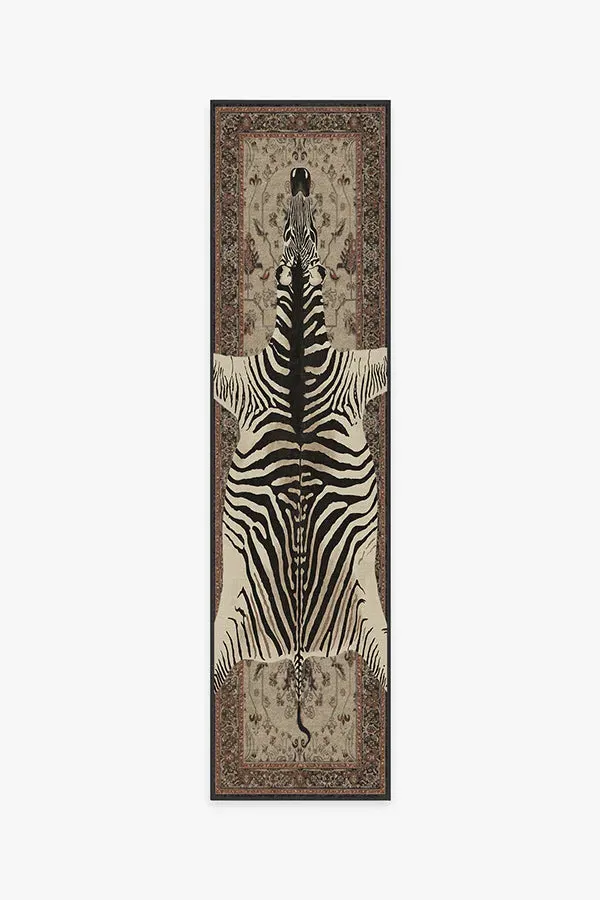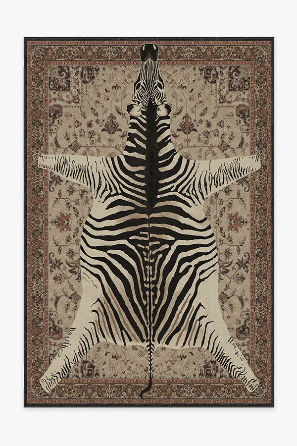 Dare to be different. Our Iris Apfel On Safari Hazel Rug features an intricate Persian-inspired design layered with large animal imagery for a sense of sophisticated eclecticism. The warm tonal tans of this piece call back to the zebra's homeland of the African grasslands and savannah woodlands. Made from our water-resistant, stain-resistant, and machine-washable low-pile Chenille material. 60x90 | Machine Washable Area Rug | Kid & Pet Friendly | Indoor Rugs | On Safari Hazel Rug by Iris Apfel Brown | Ruggable
