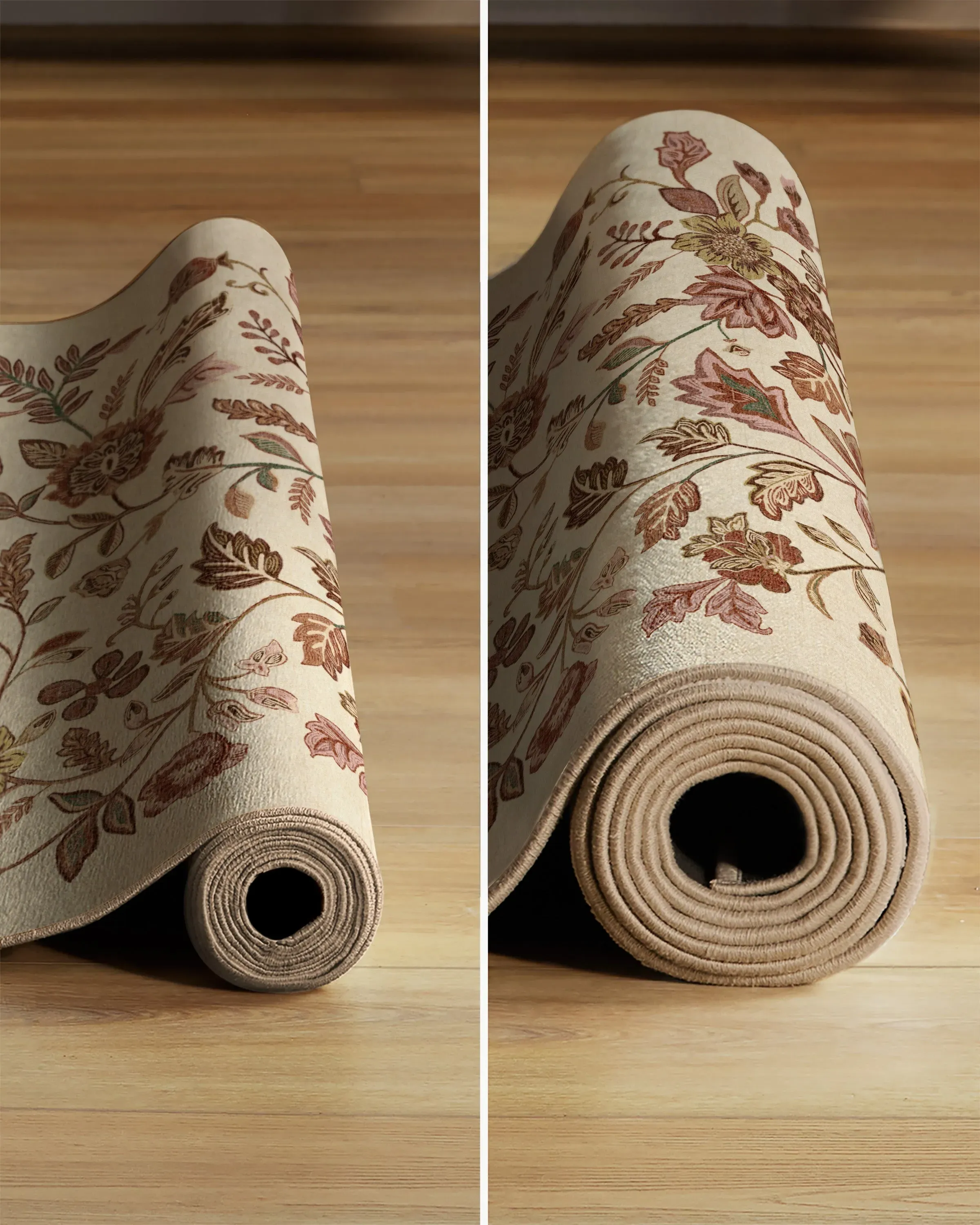 The area rug combines autumn-inspired patterns with dusty pink, terracotta, olive green, and burgundy colours on a light cream background. Its water-resistant surface resists stains and spills, while the fully machine-washable construction allows for easy cleaning. The multicolour design adds visual interest to any space, and the durable materials ensure long-lasting performance. W60 x L90 cm.