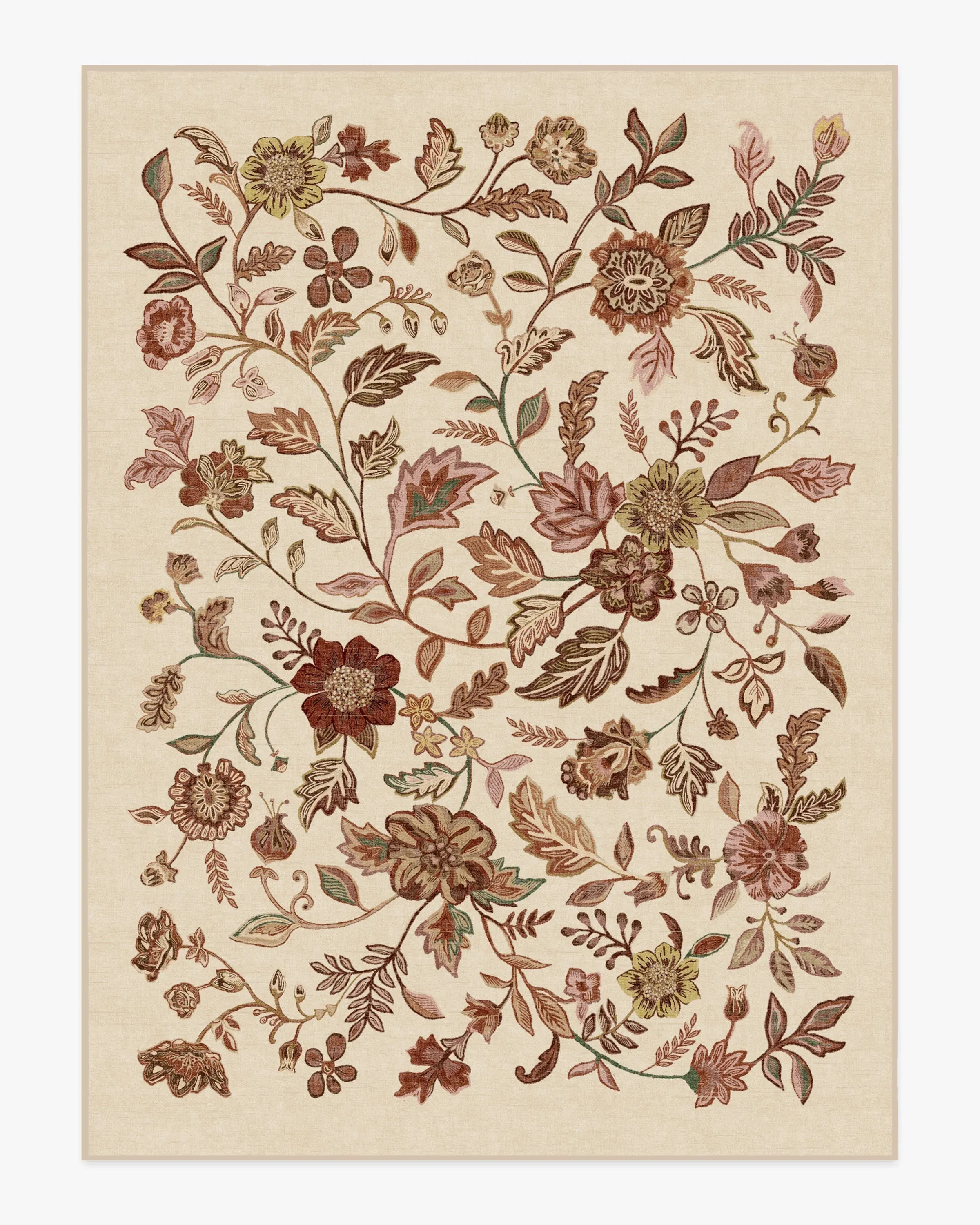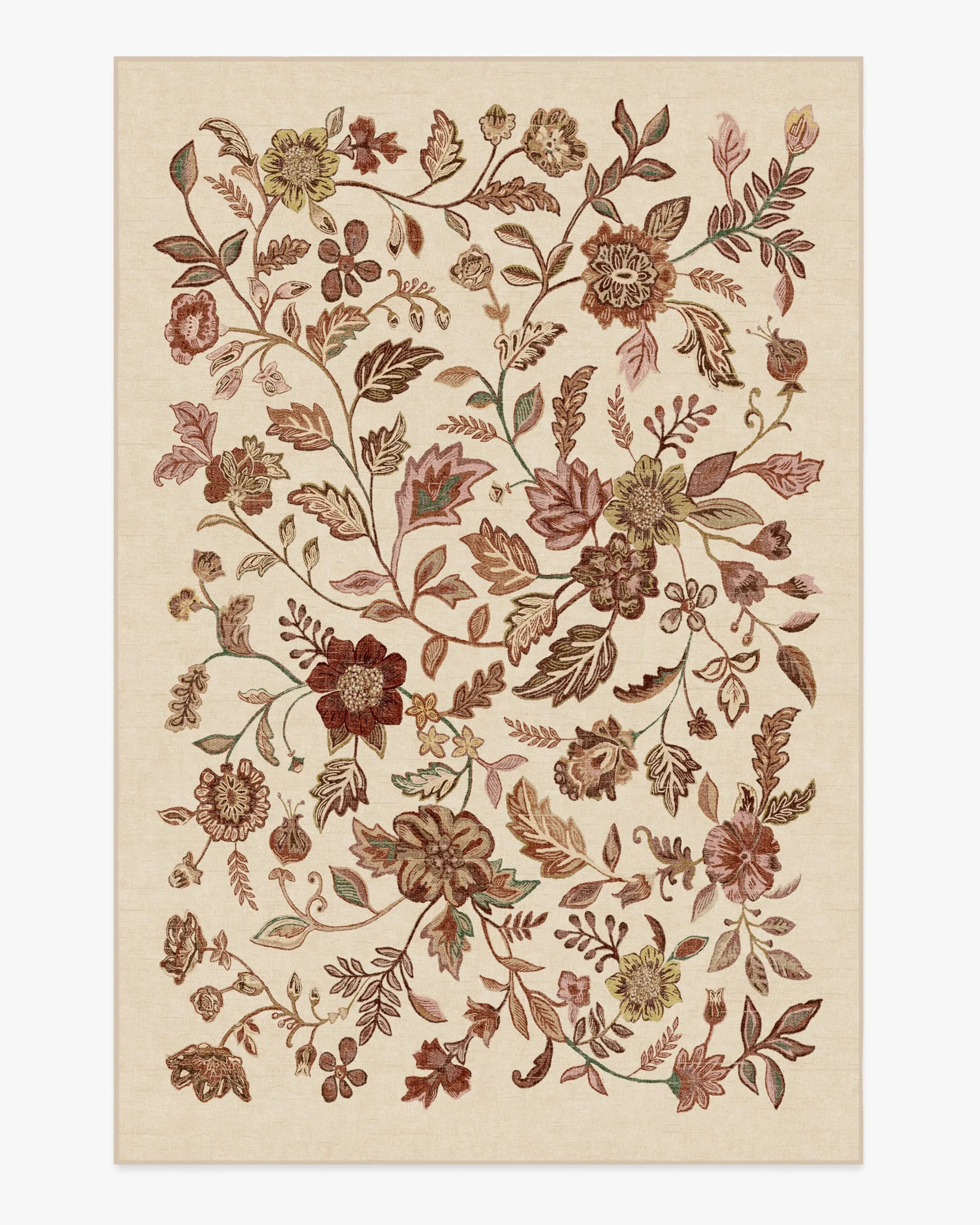 Embrace changeâor at least the changing of the seasons with the Anonna Burgundy Multicolour Rug. This design beautifully captures the flow of autumn foliage with a combination of dusty pink, terracotta, olive green, taupes, light browns, and burgundy, along with pops of gold and light yellow on a light cream setting. Water-resistant, stain-resistant, and fully machine-washable. Colours may vary by device and lighting. 60x90 | Machine Washable Area Rug | Kid & Pet Friendly | Indoor Rugs | Anonna Burgundy Multicolor Rug | Ruggable