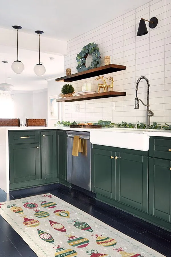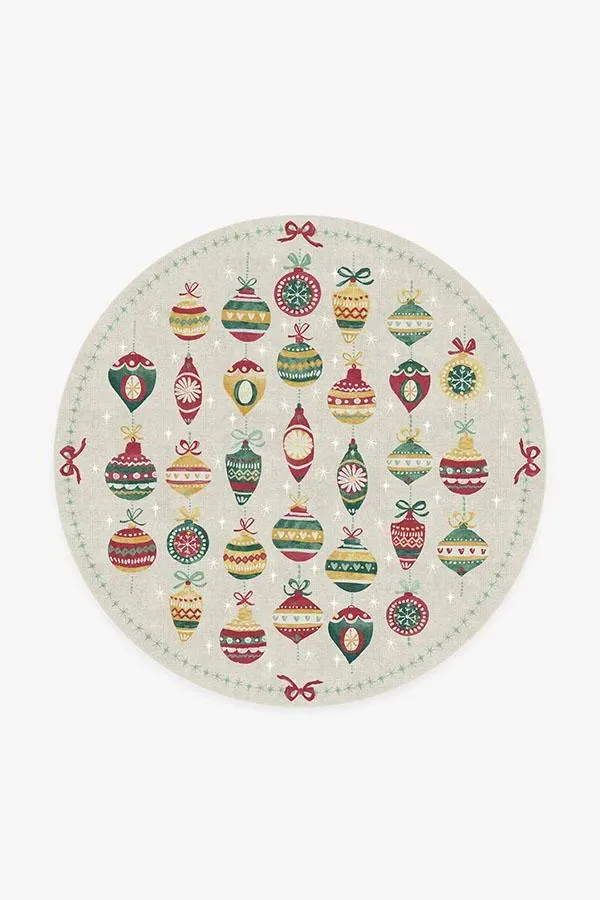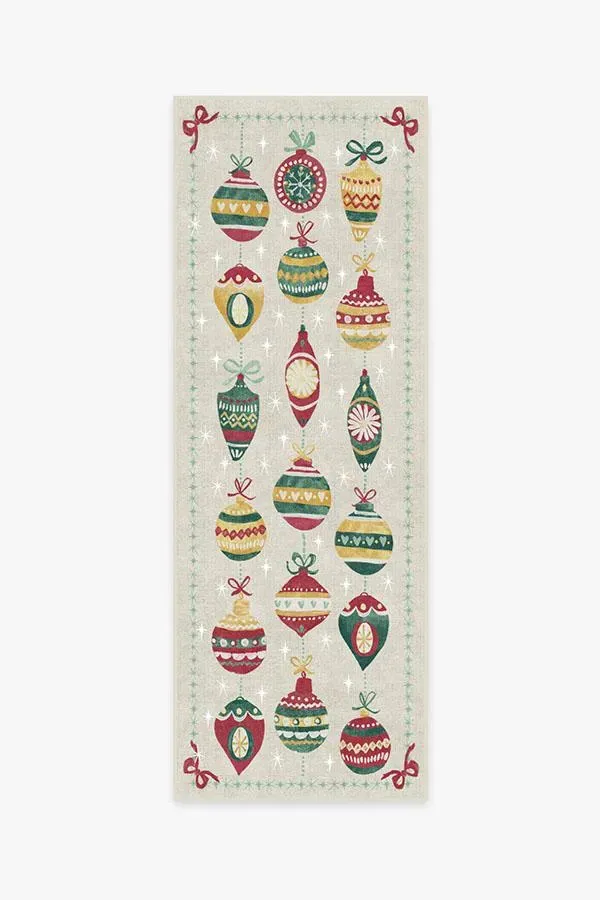 Relive your childhood yuletide memories with our Festive Garland Holiday Shortbread Rug. The colourful design features retro-style ornaments bordered by stars and ribbons in pistachio green, teal blue, polenta yellow, and raspberry red on a background of light cream. Made from our water-resistant, stain-resistant, and machine-washable low-pile Chenille material. 60x90 | Machine Washable Area Rug | Kid & Pet Friendly | Indoor Rugs | Festive Garland Holiday Shortbread Flatwoven Rug | Ruggable