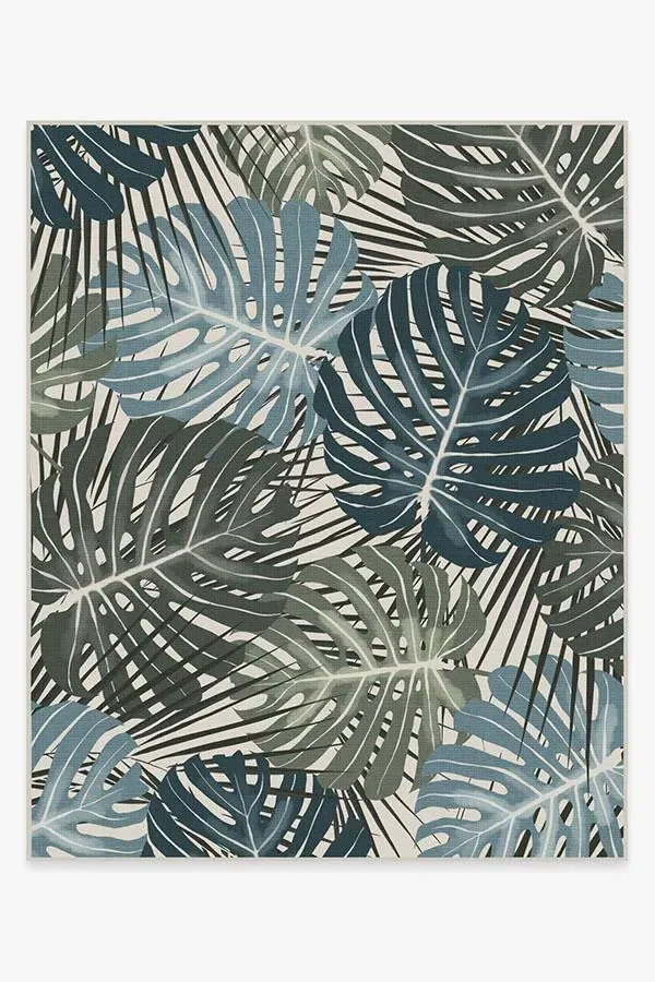 Add a touch of greenery to your home interior with Monstera Jade Rug. Hand-drawn layers of sage green and teal blue leaves criss-cross on a light background, creating a rainforest-like feel that's at once calming and mesmerizing. 60x90 | Machine Washable Area Rug | Kid & Pet Friendly | Indoor Rugs | Monstera Jade Flatwoven Rug | Ruggable
