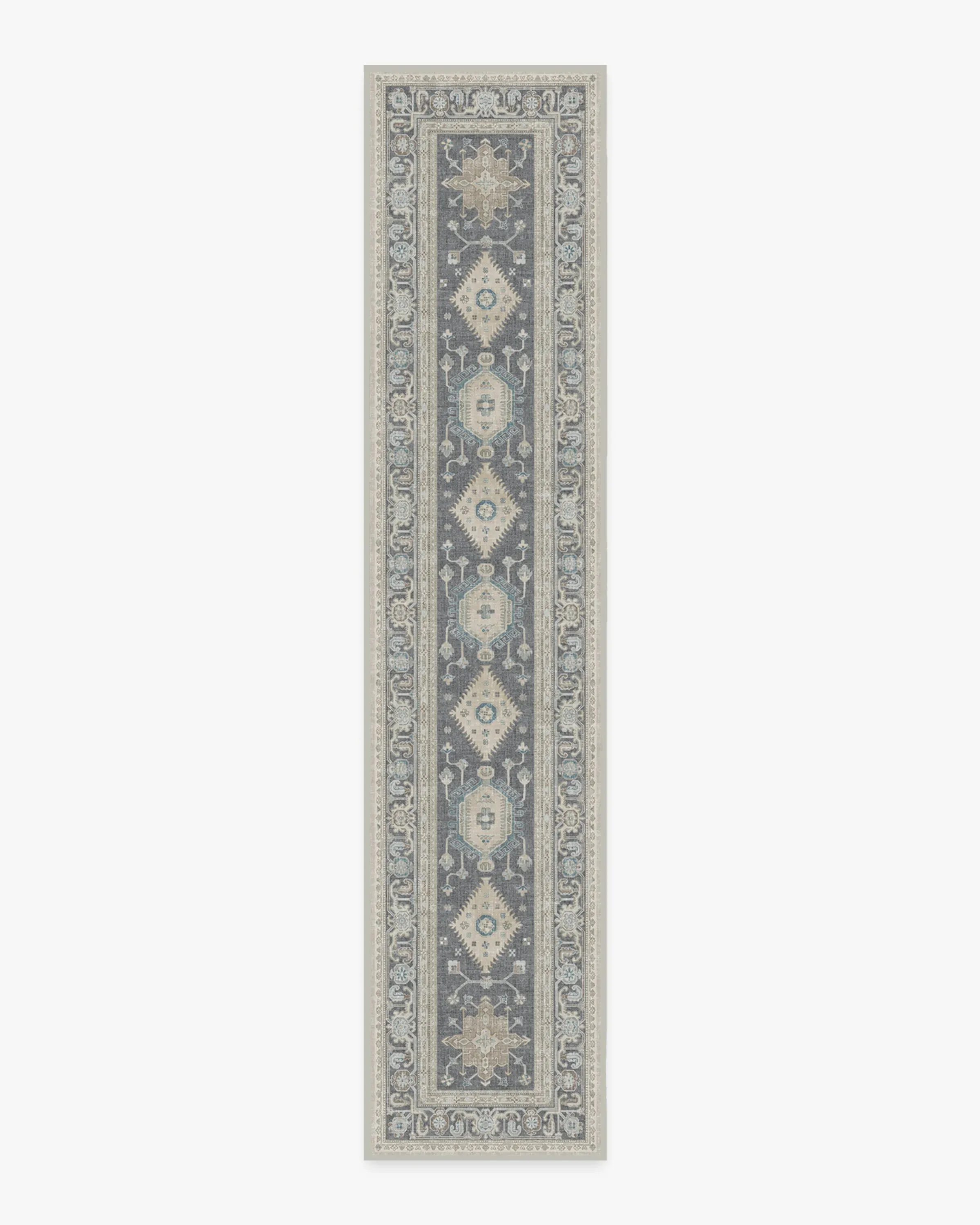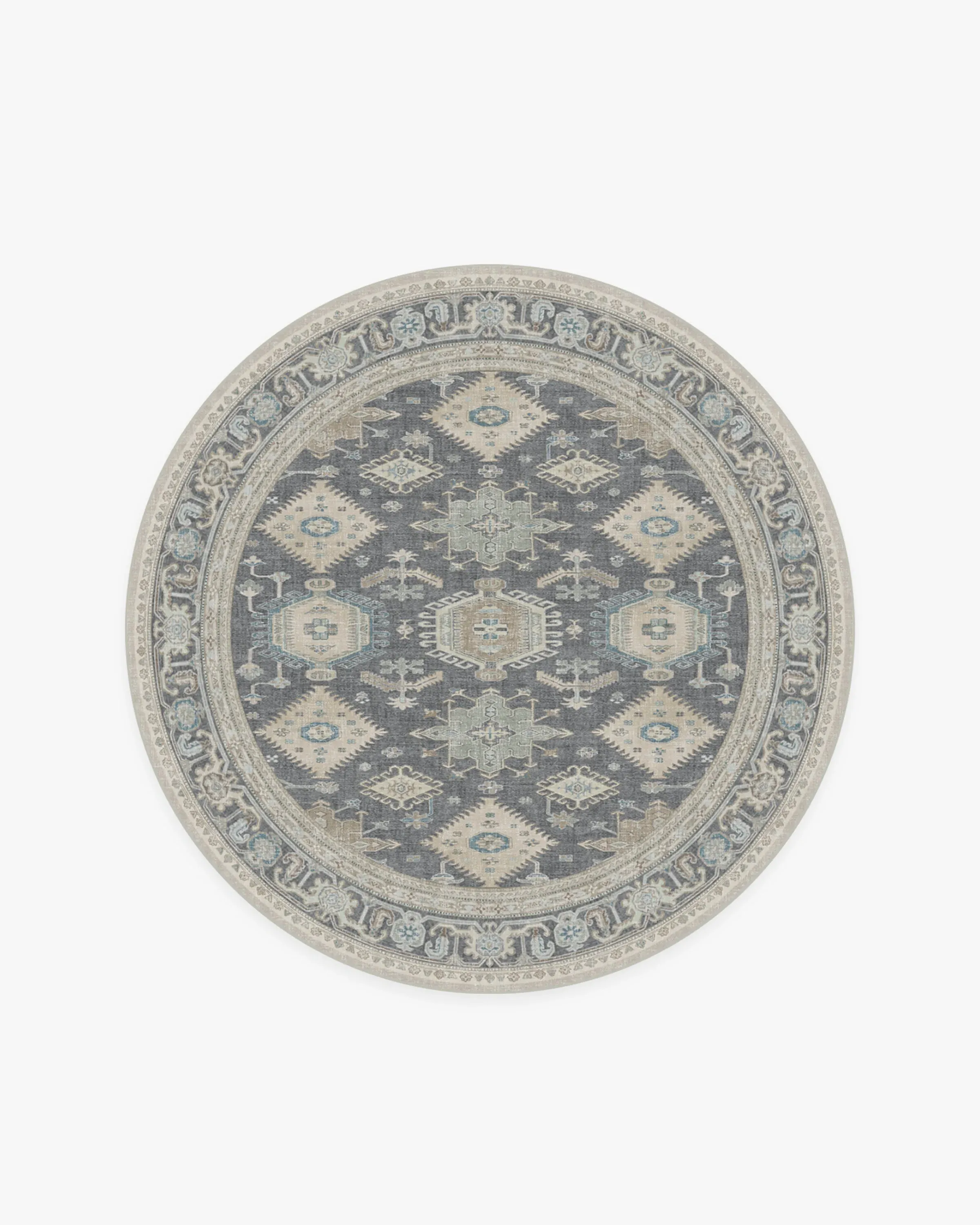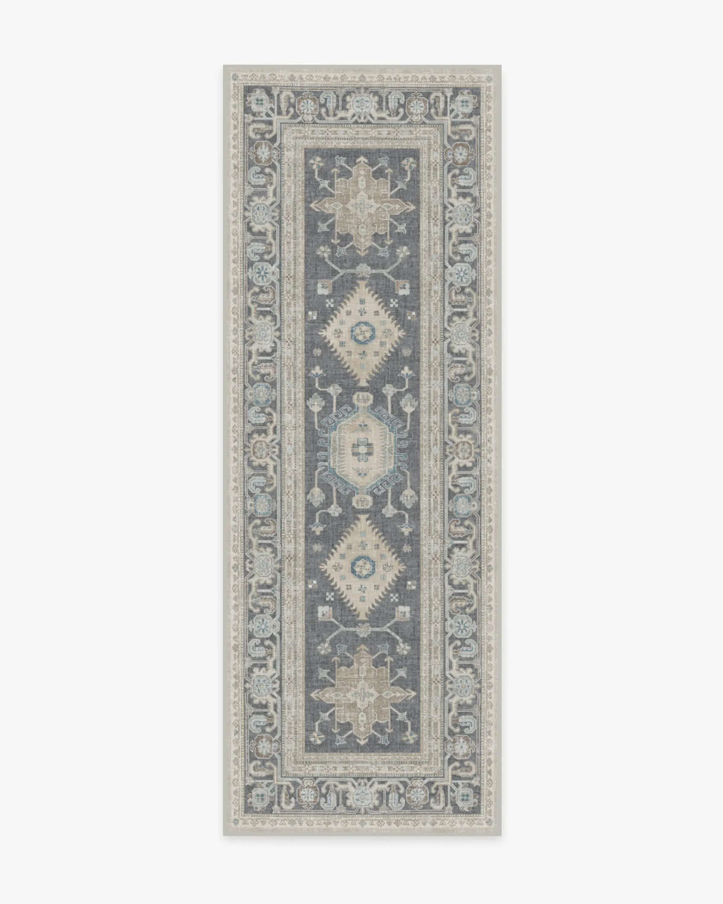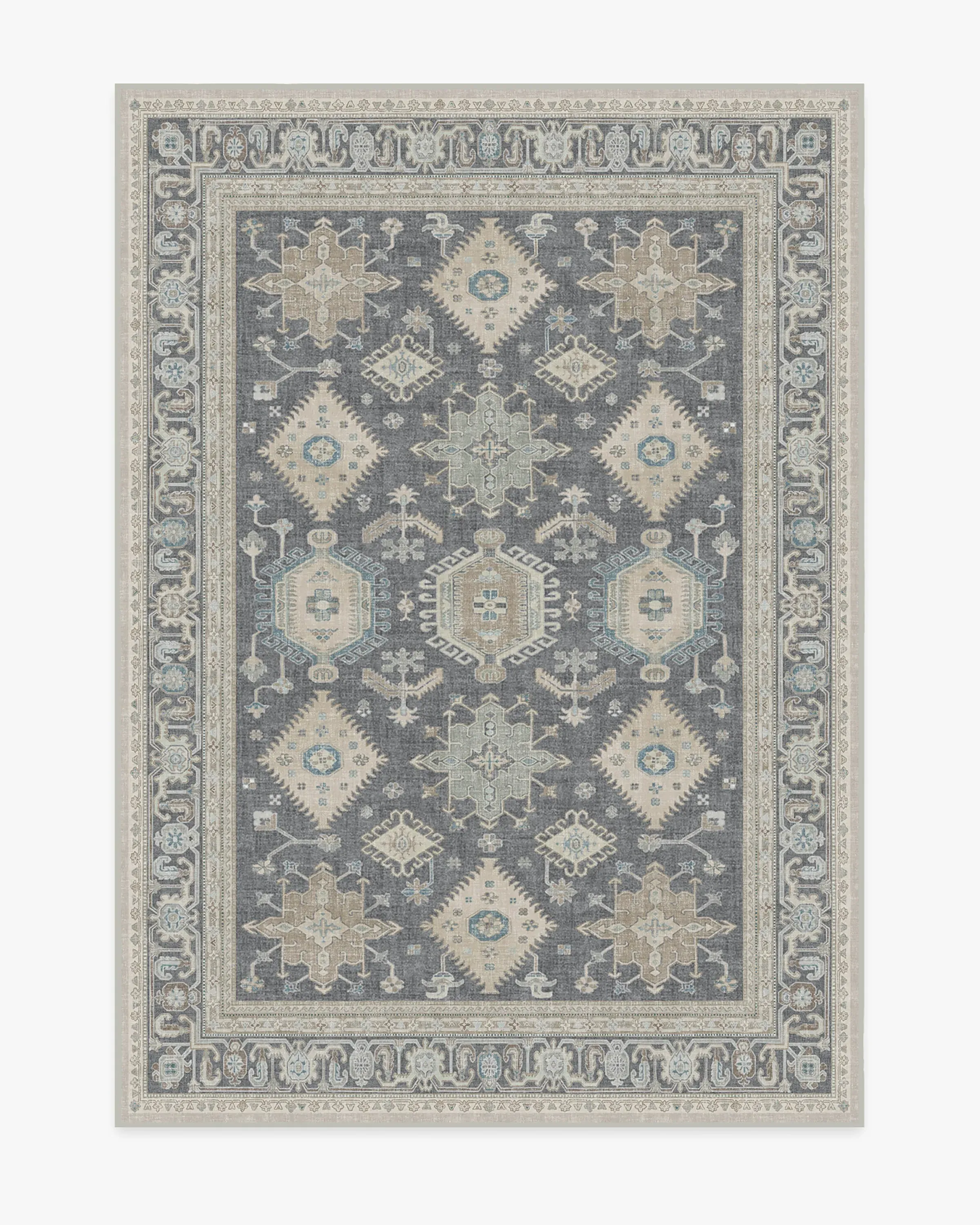 Add a touch of worldly influence to your home with the Cambria Abalone Rug. Inspired by Turkish kilim rugs, the intricate pattern of this grey Persian rug design features hues of greige, sage green, and teal with cream accents. 60x90 | Machine Washable Area Rug | Kid & Pet Friendly | Indoor Rugs | Cambria Abalone Flatwoven Rug Grey | Ruggable