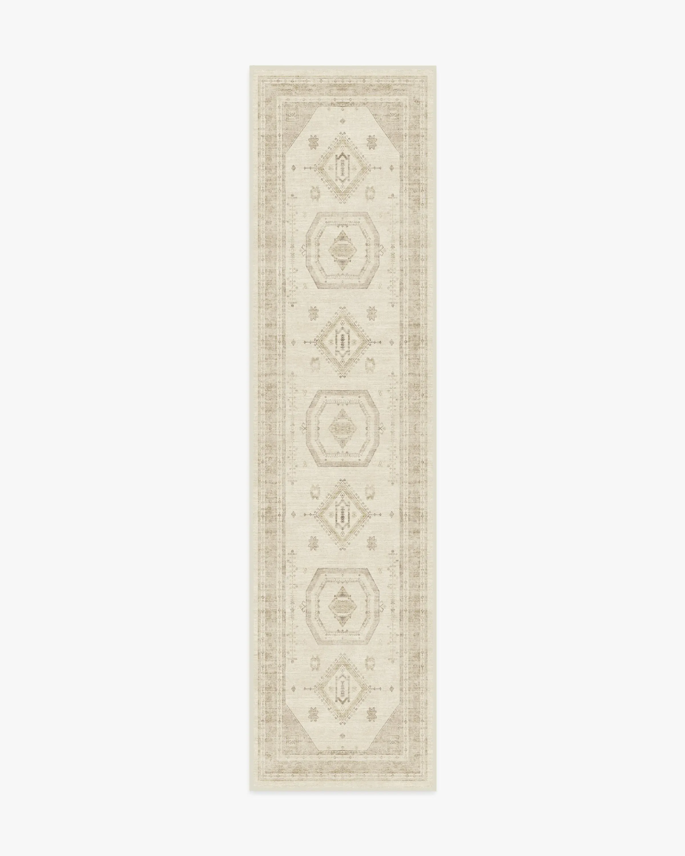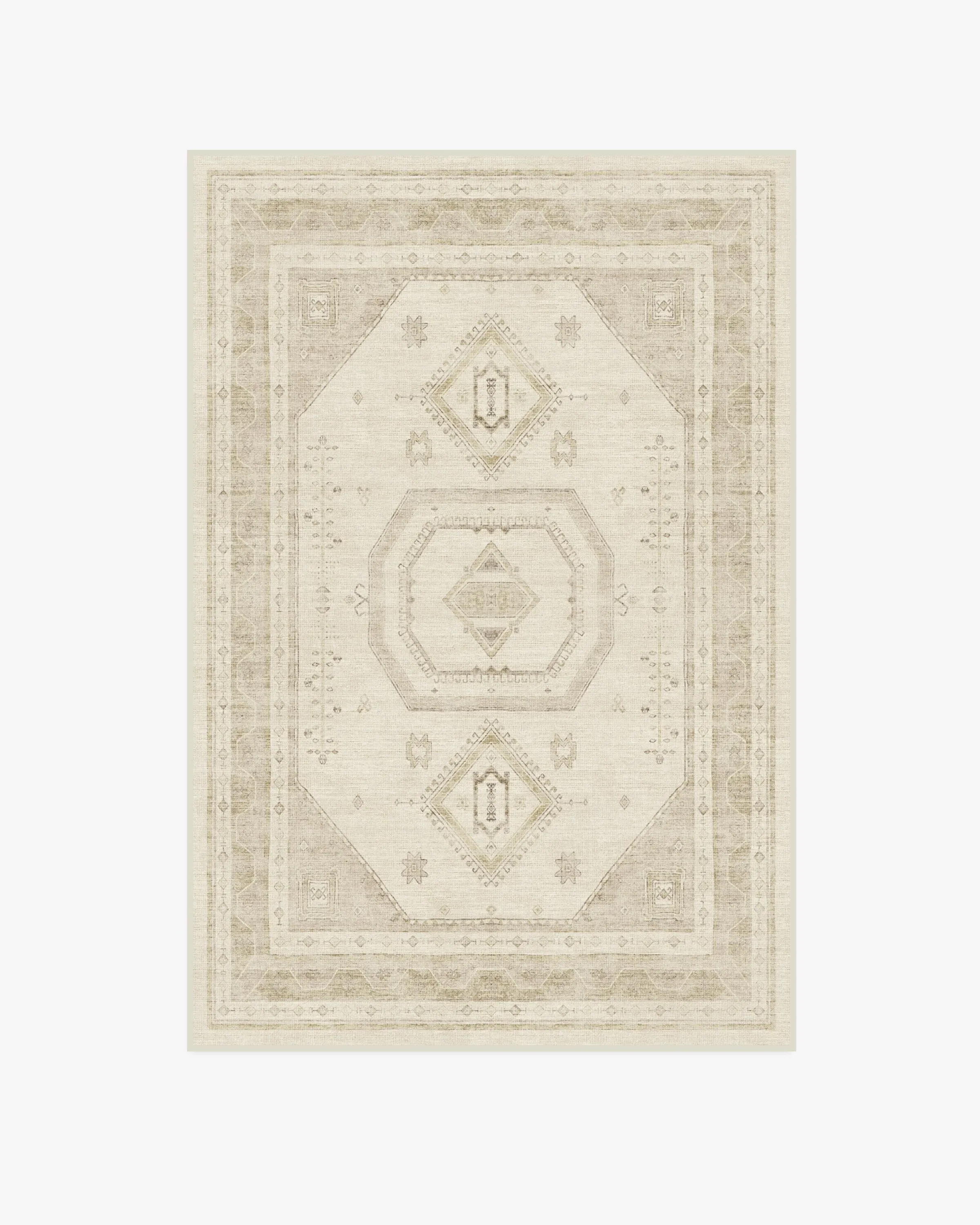 Welcome life home with our Shira Ivory & Natural Rug. Full of imaginative motifs inspired by Spanish artisans, this worldly, geometric design features warm gold accents and natural tones beautifully paired with ivory and sun-bleached elements. Water-resistant, stain-resistant, and machine-washable. Rug colours may vary slightly according to your device and the lighting in your space. 60x90 | Machine Washable Area Rug | Kid & Pet Friendly | Indoor Rugs | Shira Ivory & Natural Rug | Ruggable