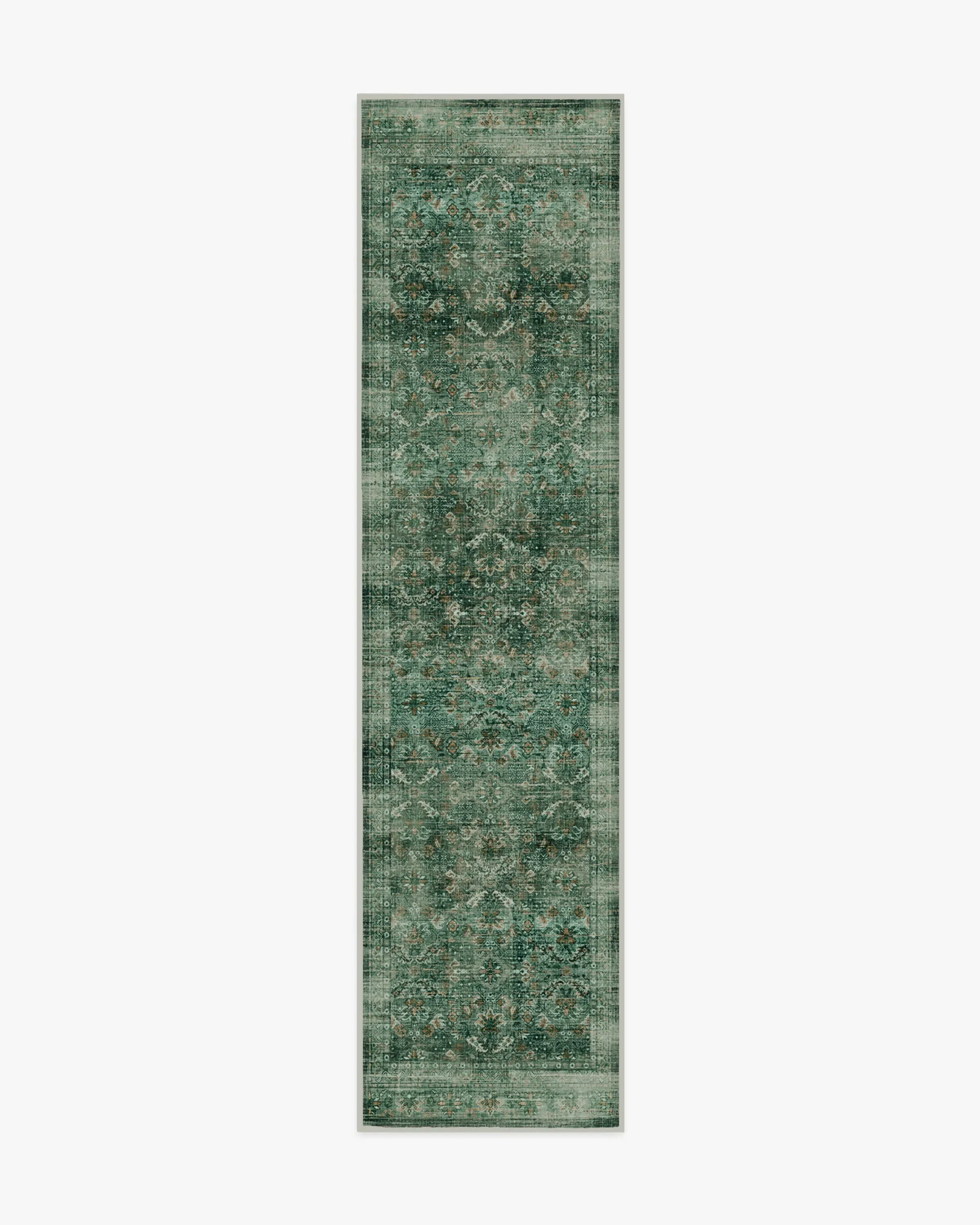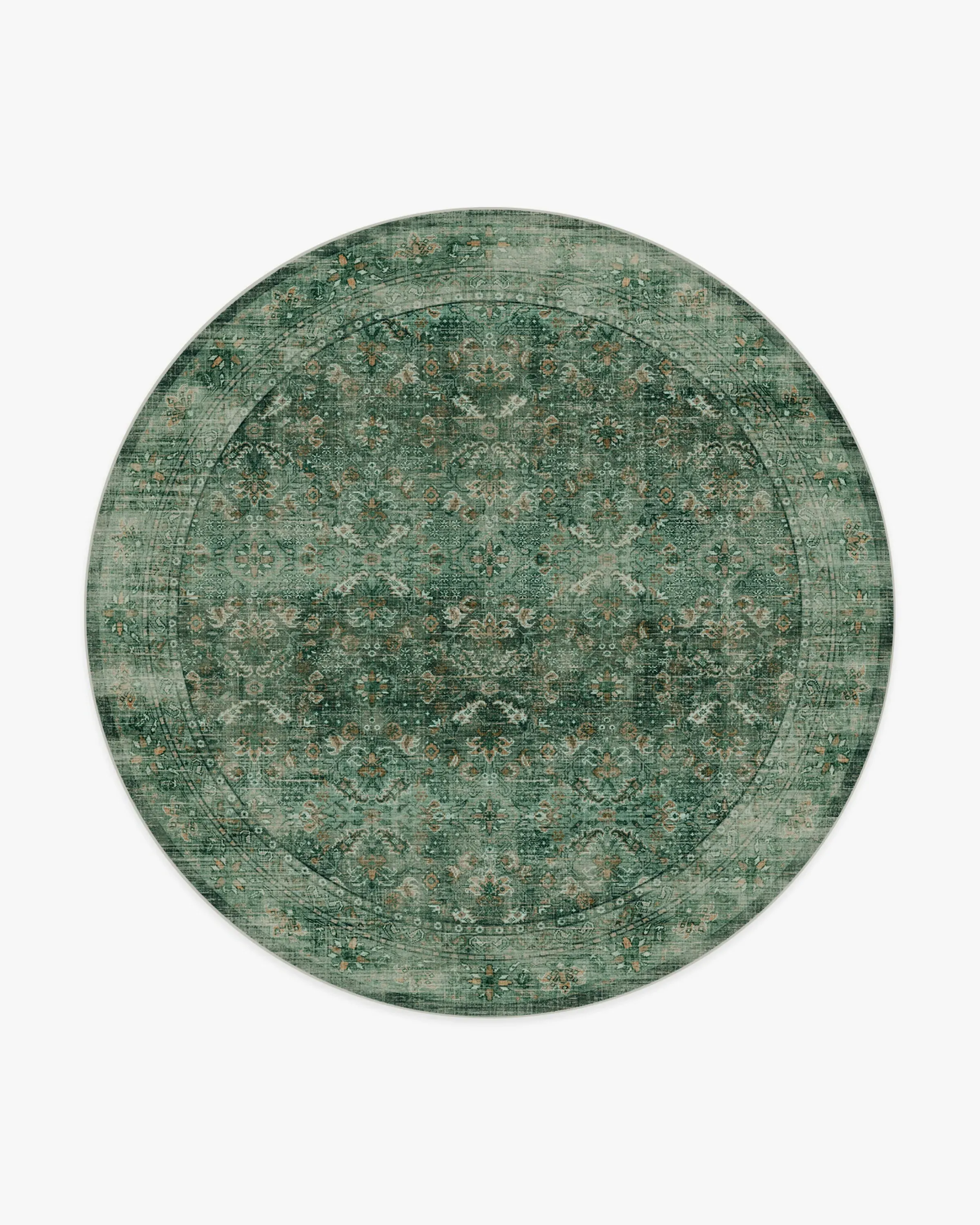 Elegant. Timeless. Inviting. Inspired by vintage jacquard textiles, our Frances Jade Green Rug features a design composed of repeated artistic motifs. Deep greens mix harmoniously with softer jades, while rich gold accents and delicate cream details add warmth and elegance to the overall design. Its inviting palette and antique texture brings an air of elegance to any room. Water-resistant, stain-resistant, and machine-washable. Rug colours may vary slightly according to your device and the lighting in your space. 60x90 | Machine Washable Area Rug | Kid & Pet Friendly | Indoor Rugs | Frances Jade Green Rug | Ruggable