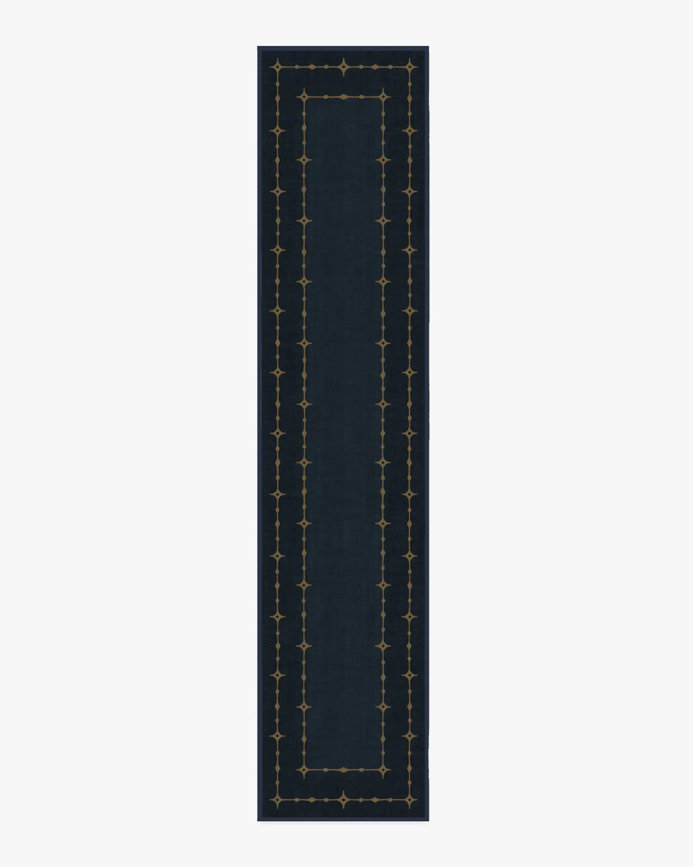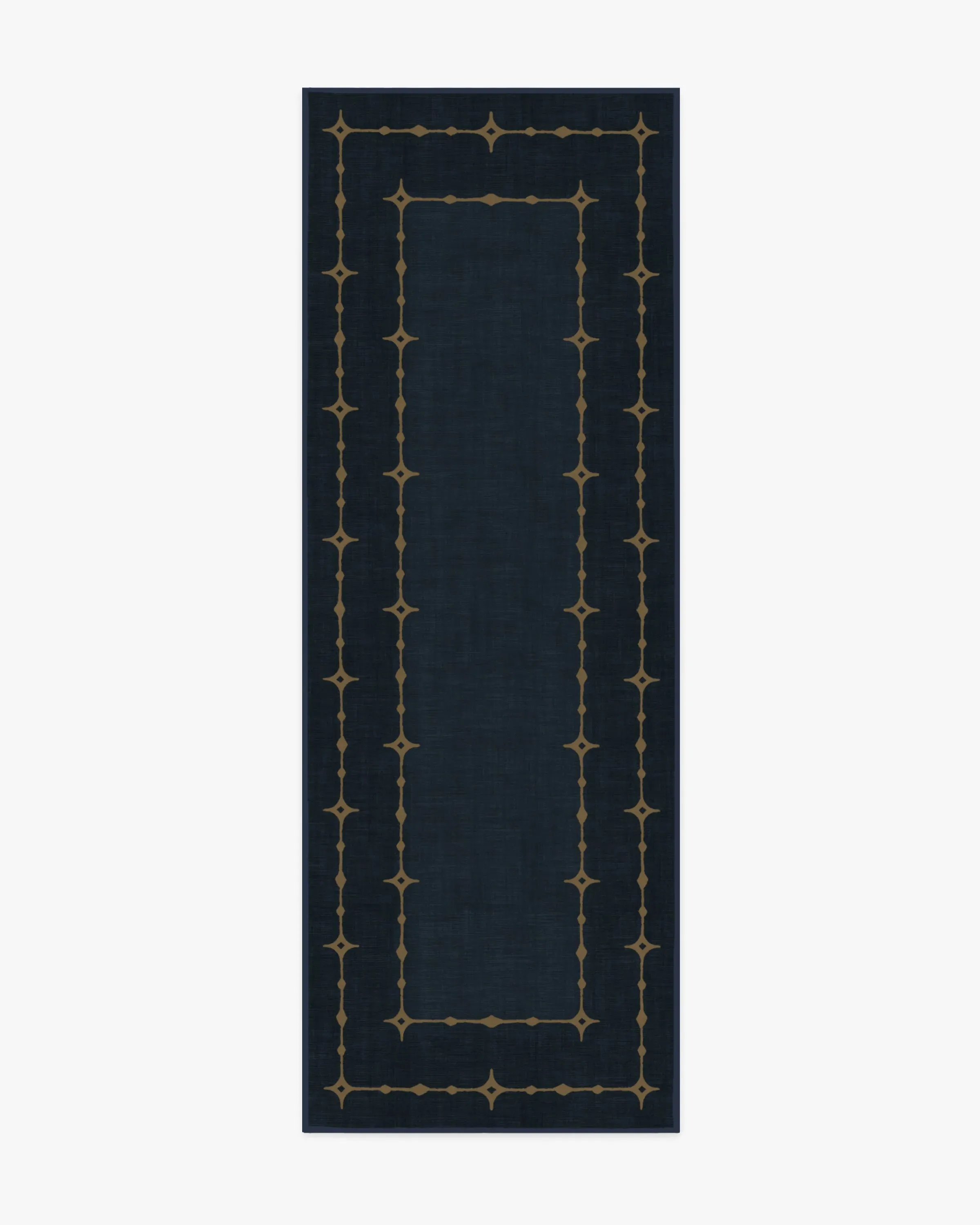 Transform your space into a starry dreamland with our Sparkle Border Dark Navy Rug. This celestial holiday design enchants with a starlit, gold-toned border filled with sparkling dots and diamonds that truly shine against a deep navy background. Water-resistant, stain-resistant, and machine-washable. Rug colours may vary slightly according to your device and the lighting in your space. 60x90 | Machine Washable Area Rug | Kid & Pet Friendly | Indoor Rugs | Sparkle Border Dark Navy Rug | Ruggable