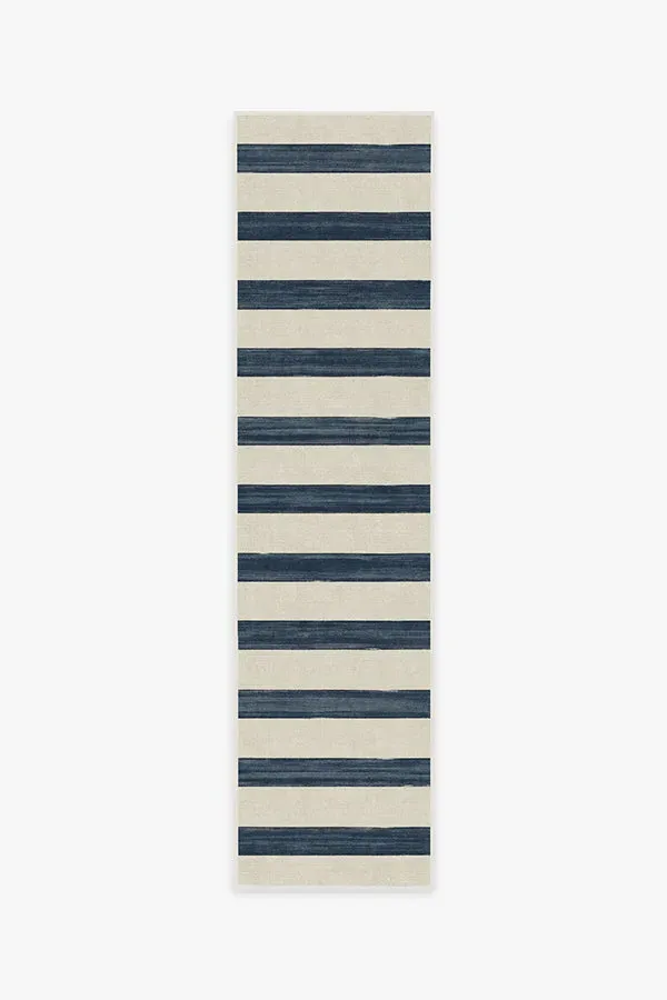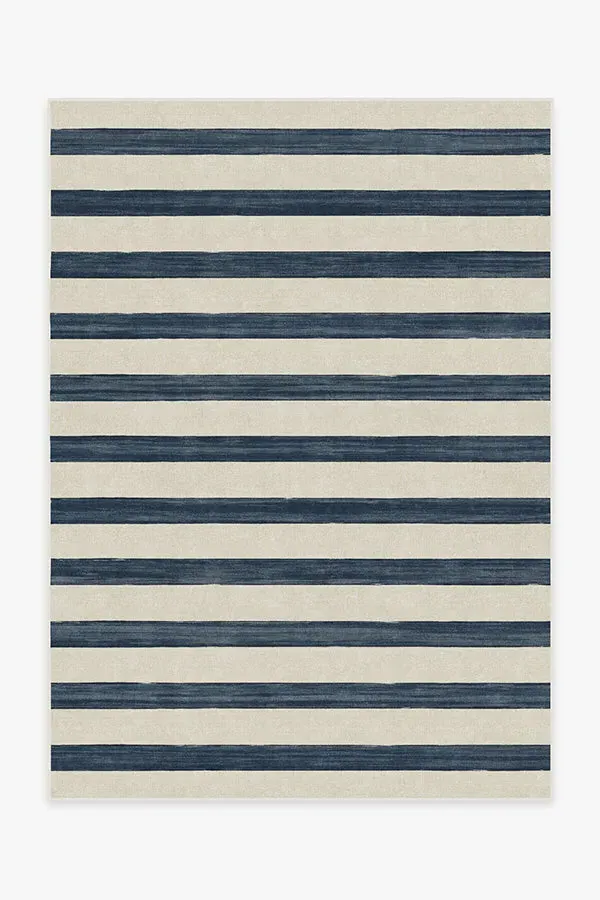A bold take on stripes. Our Sumi Sailor Stripe Navy Rug intertwines warm navy and inky blue stripes that alternate against a soft pearl background. Made from our water-resistant, stain-resistant, and machine-washable low-pile Classic material. Our Classic Rugs are woven from a velvety smooth chenille yarn. 60x90 | Machine Washable Area Rug | Kid & Pet Friendly | Indoor Rugs | Sumi Sailor Stripe Navy Rug | Ruggable