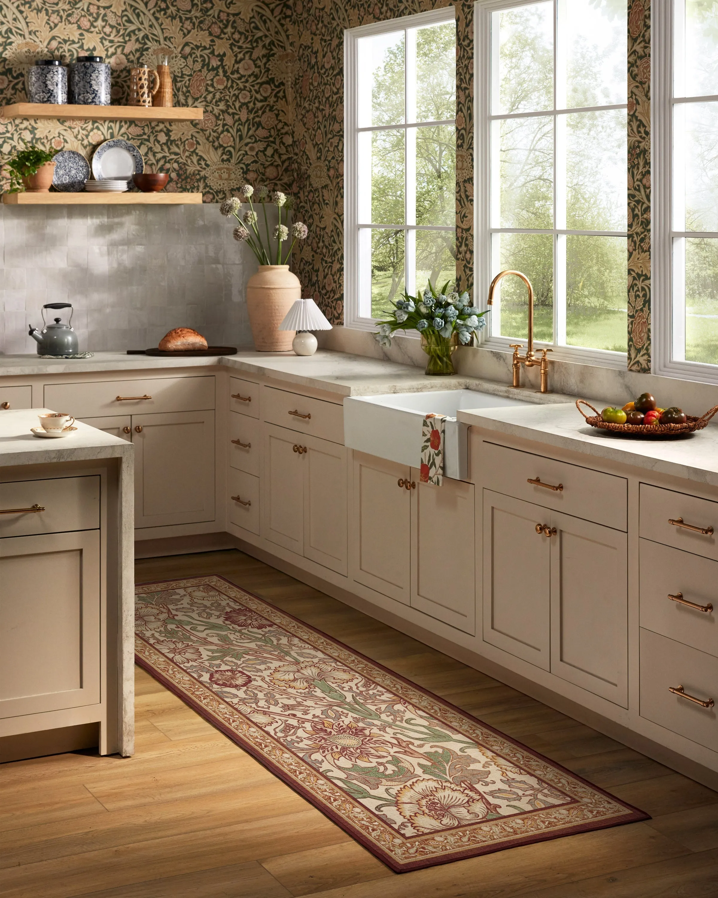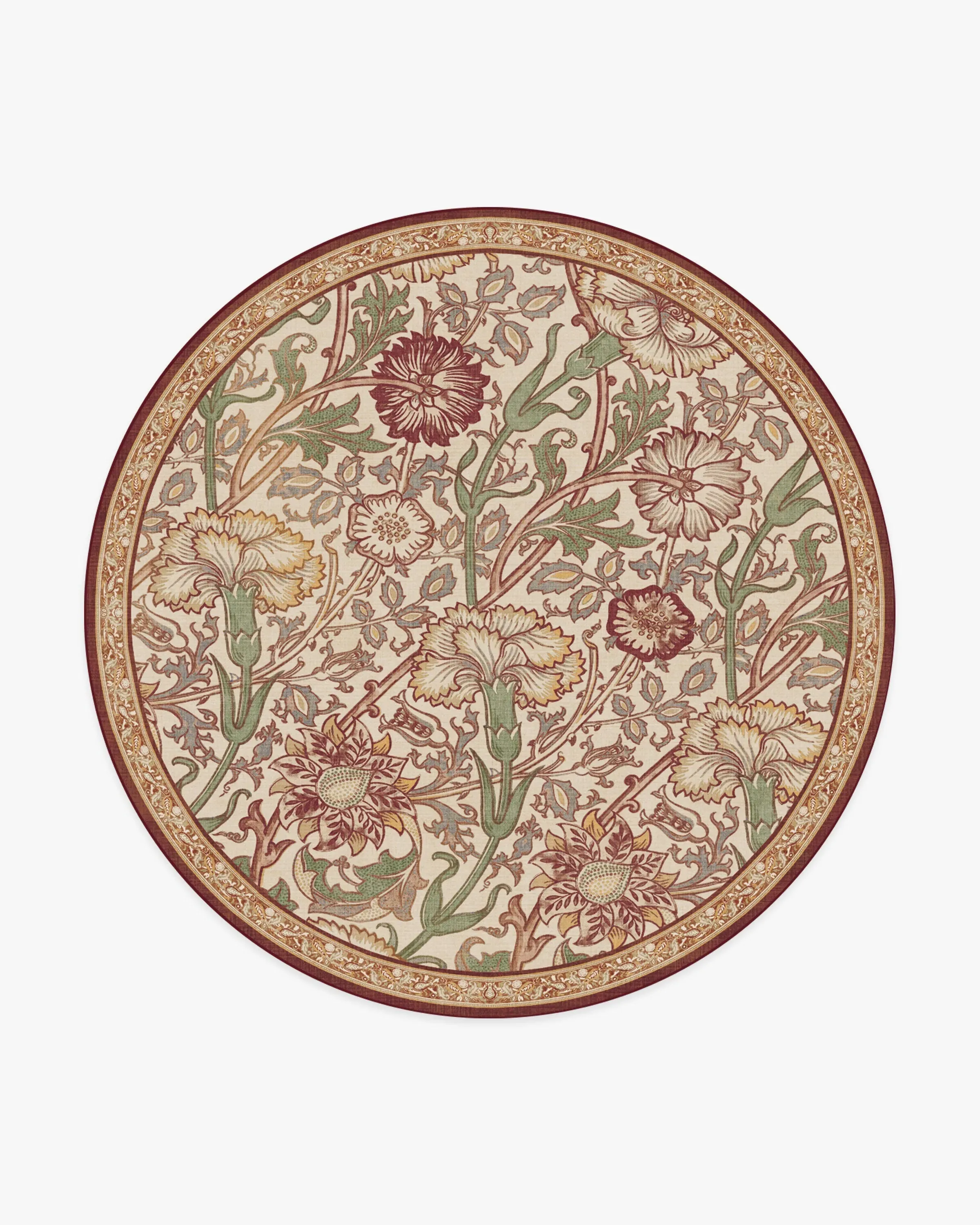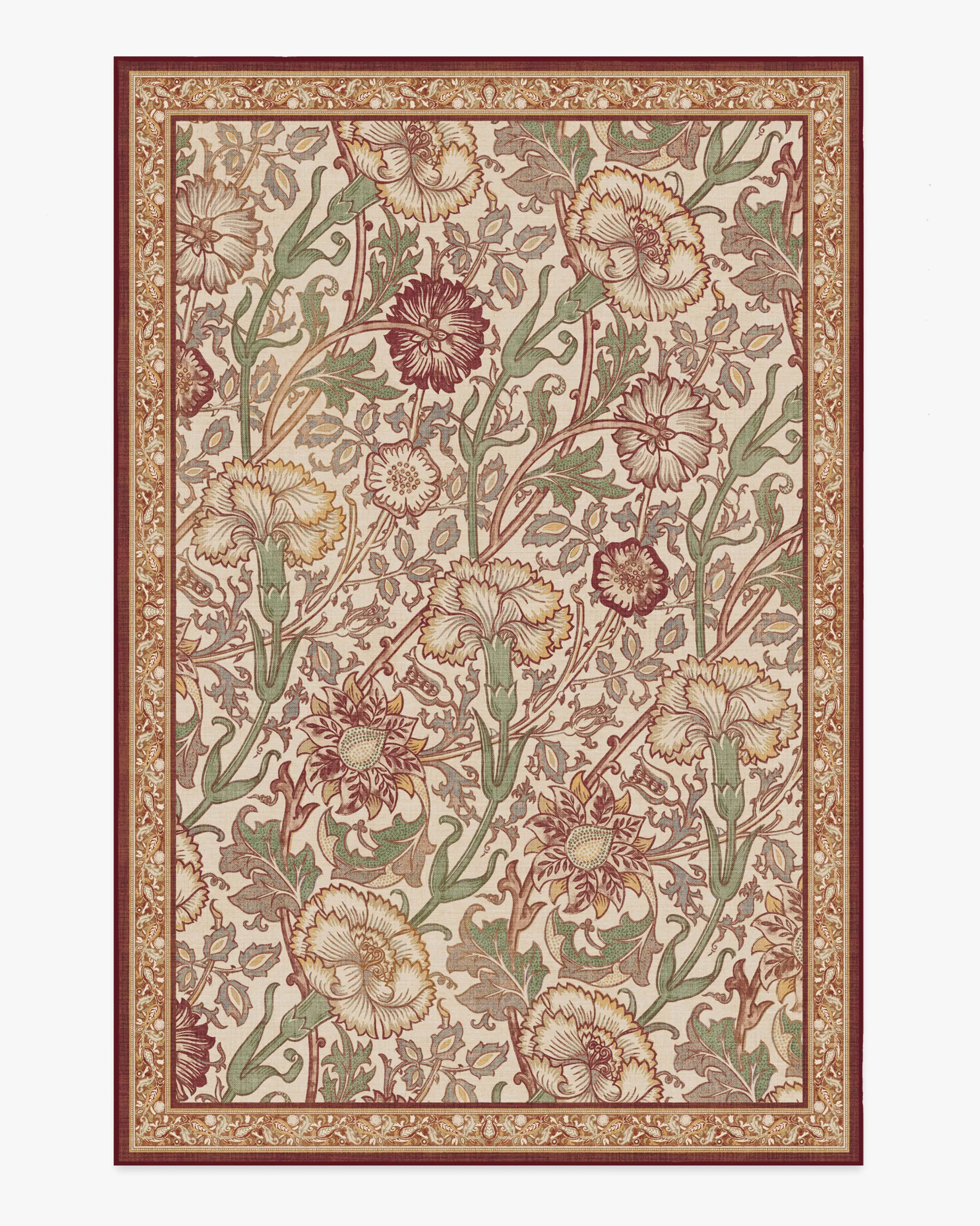 Meet our Morris & Co. Pink & Rose Burgundy Rug, made for memorable moments. Designed by William Morris himself, this detailed composition of delicate linework, interlocking roses, and flowering carnations adds character and charm to any room. A modern translation of vintage woodblock printing techniques, this design features an antiqued colour palette of rich burgundy, natural gold, earthy green, and soft grey. Water-resistant, stain-resistant, and machine-washable. Rug colours may vary slightly according to your device and the lighting in your space. 60x90 | Machine Washable Area Rug | Kid & Pet Friendly | Indoor Rugs | Pink & Rose Burgundy Flatwoven Rug by Morris & Co. | Ruggable