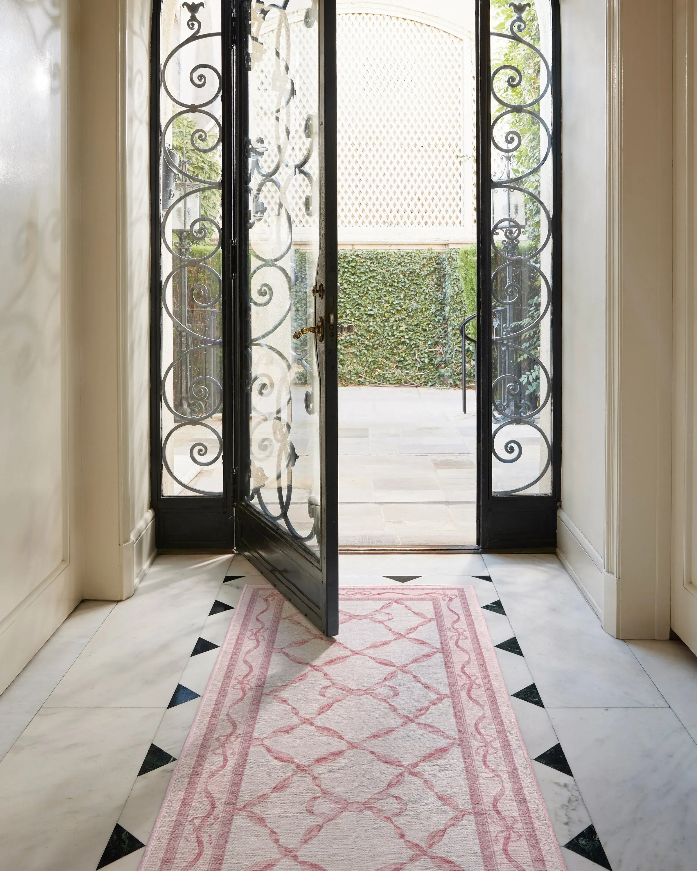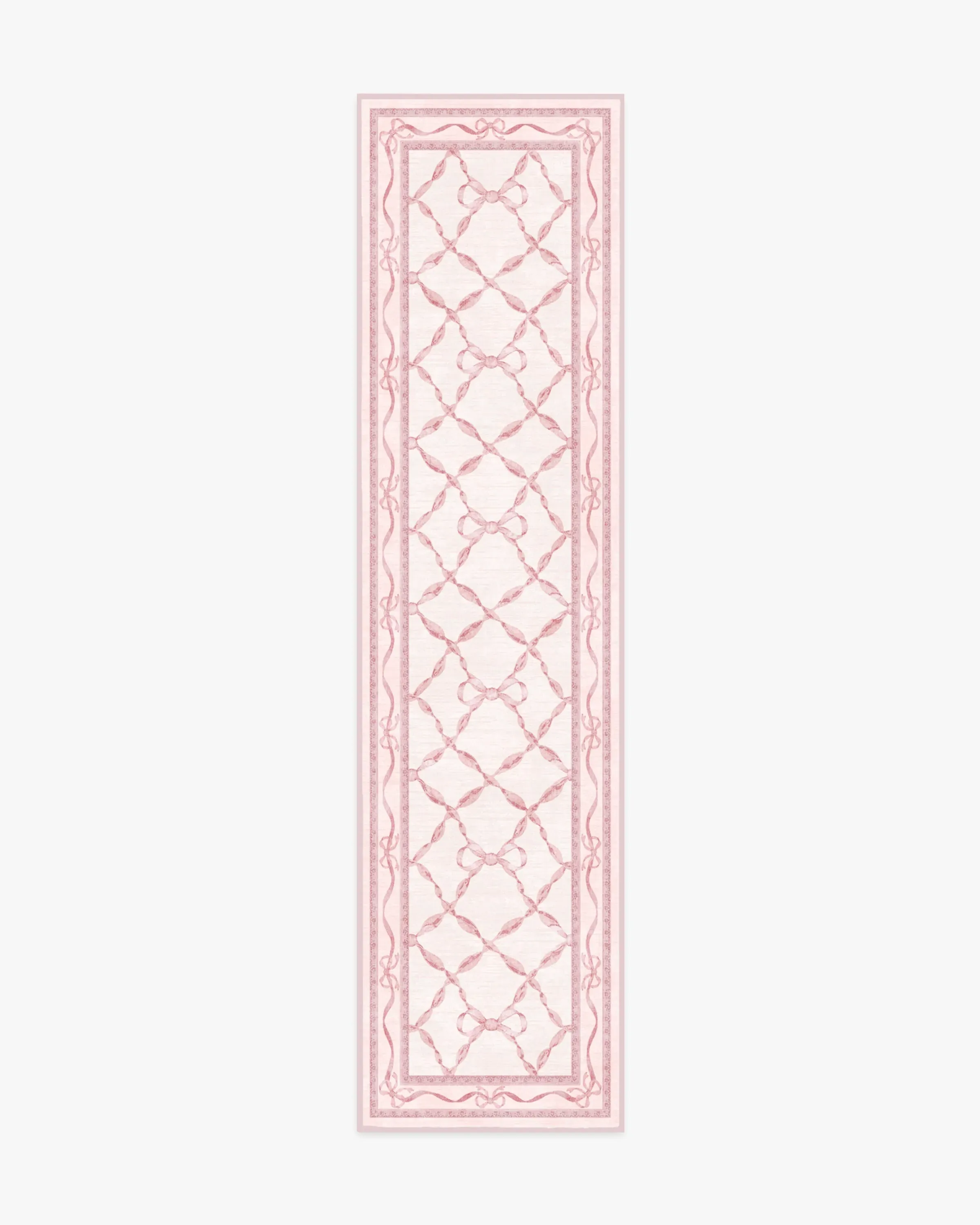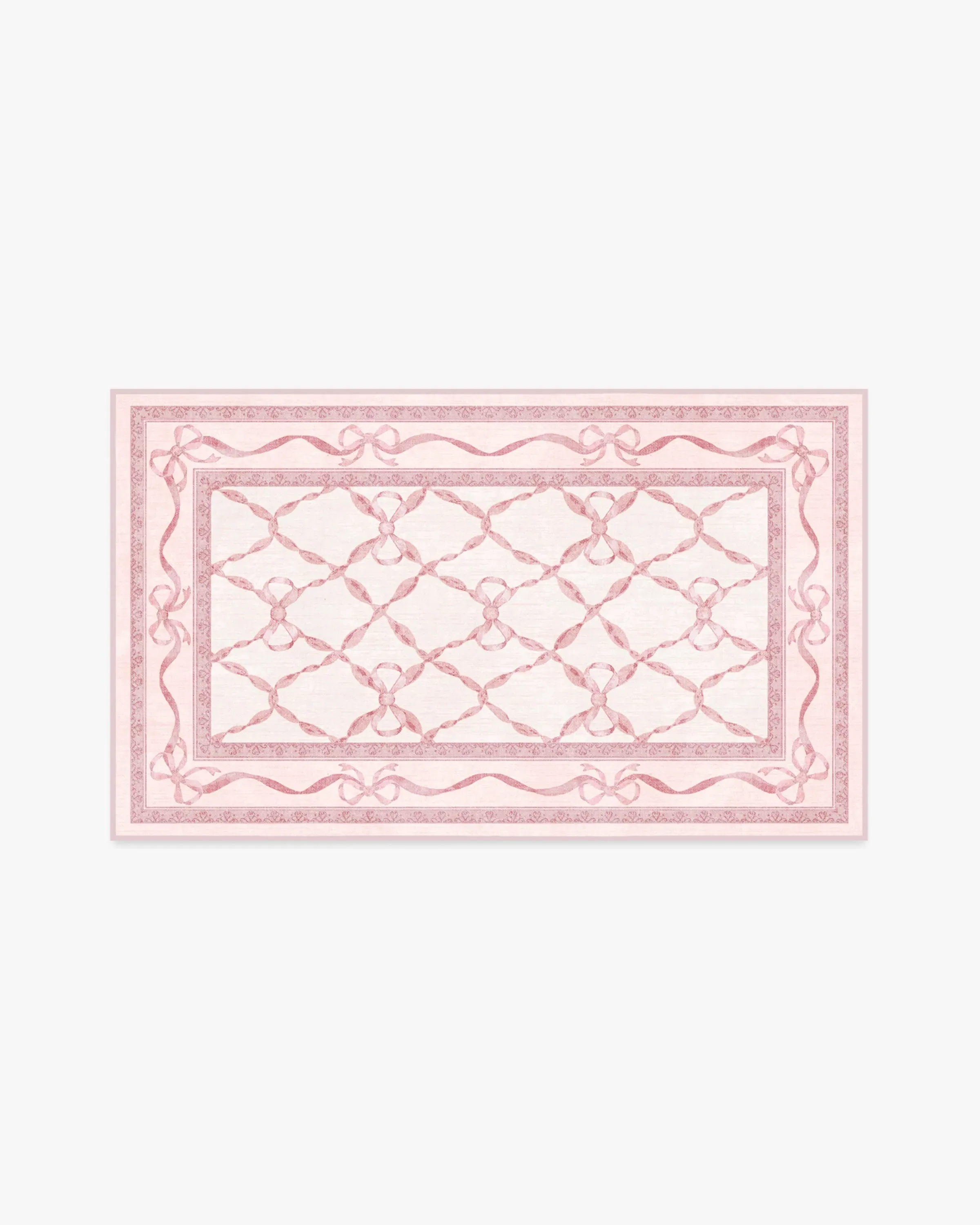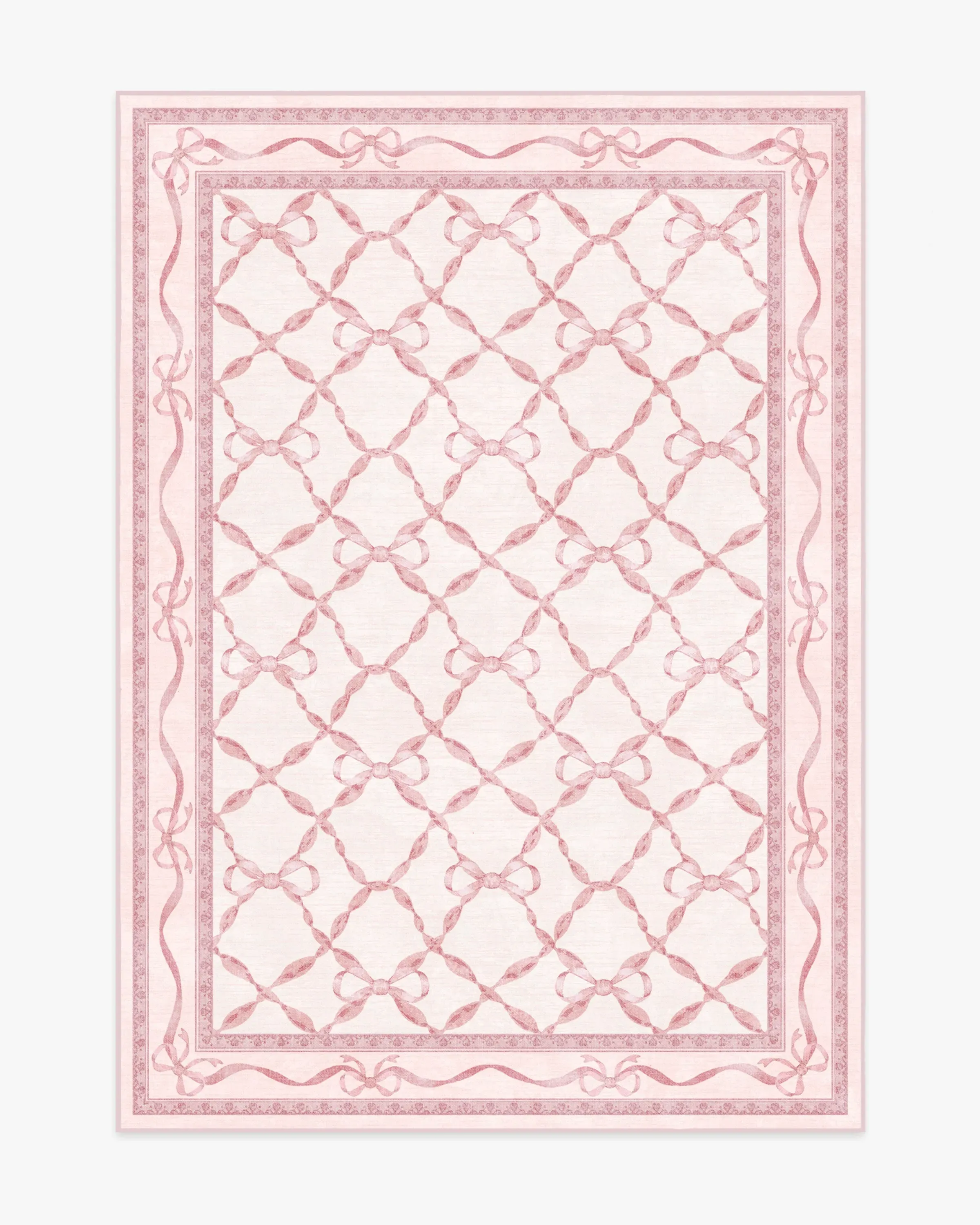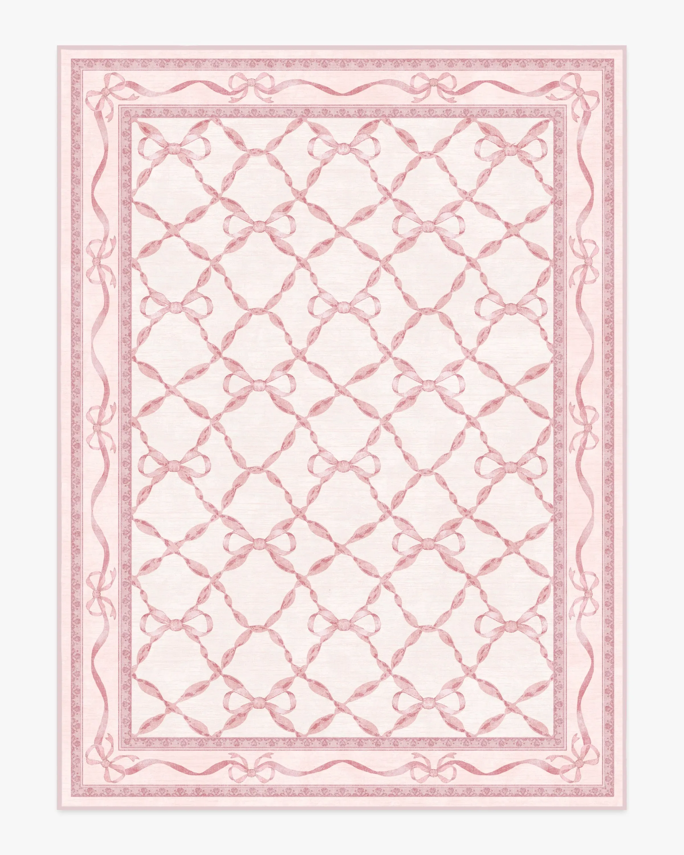 With the signature dainty and playful charm of Mrs. Alice, this design features delicate bows intricately dispersed throughout a trellis of ribbons. The subtle saturations of soft, blush pinks give the style both depth and texture, making it a perfect addition to spaces that call for elegance with a hint of whimsy. Water-resistant, stain-resistant, and machine-washable. Rug colours may vary slightly according to your device and the lighting in your space. 60x90 | Machine Washable Area Rug | Kid & Pet Friendly | Indoor Rugs | Eloise Pink Flatwoven Rug by Mrs. Alice | Ruggable