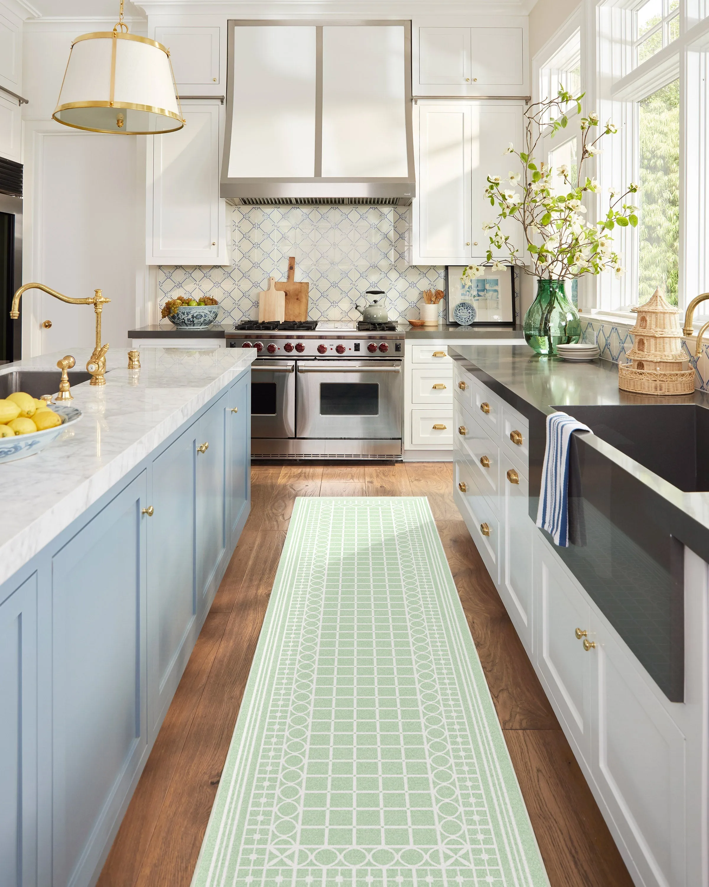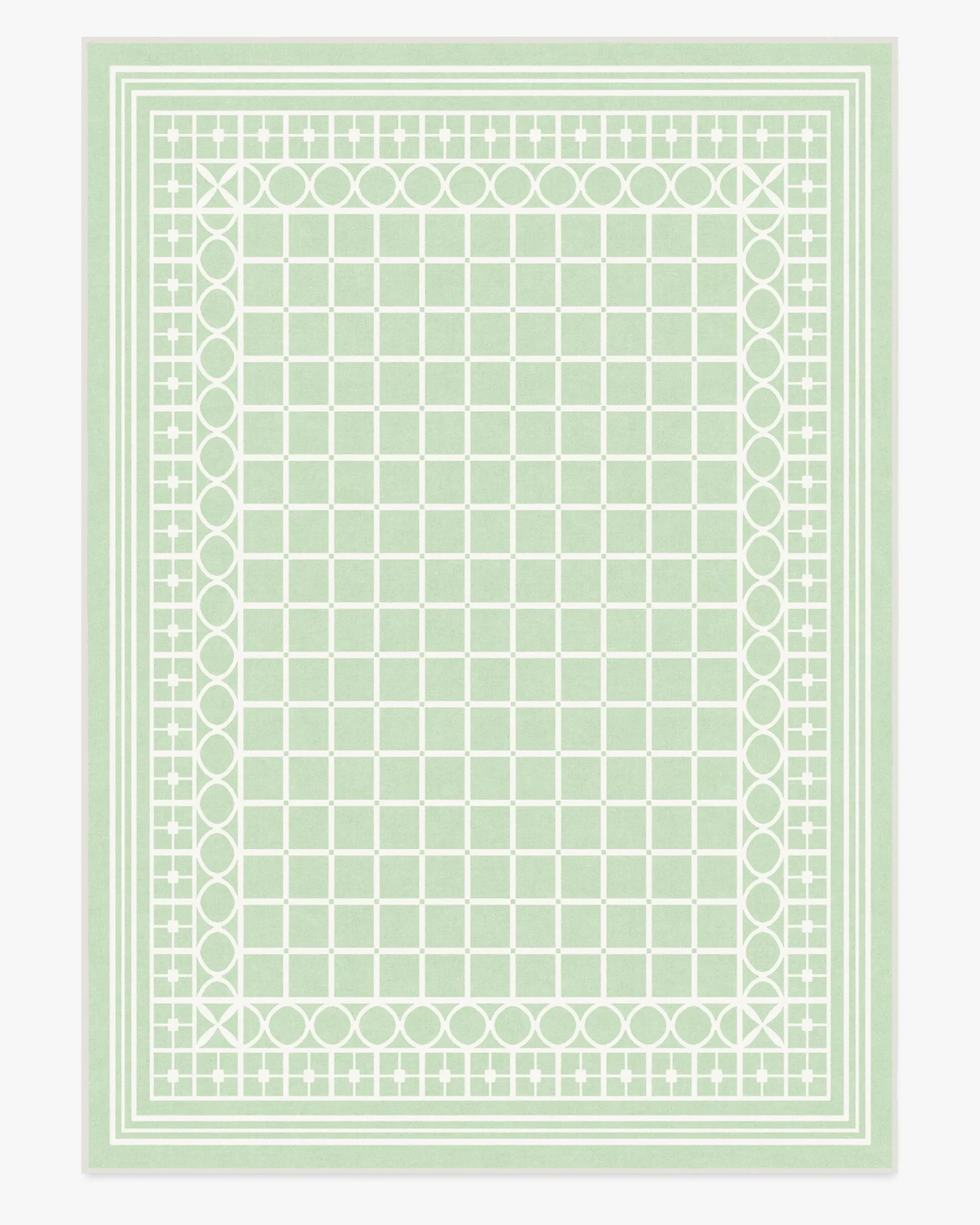 Holidays start here. With breeze block motifs pulled from Gray Malinâs travel photography, the sage green Palm Beach Rug brings laid-back elegance to your space. Crisp ivory details complete the look for that just-checked-in feeling. Water-resistant, stain-resistant, and fully machine-washable. Colours may vary by device and lighting. 60x90 | Machine Washable Area Rug | Kid & Pet Friendly | Indoor Rugs | Palm Beach Powder Sage Flatwoven Rug by Gray Malin | Ruggable