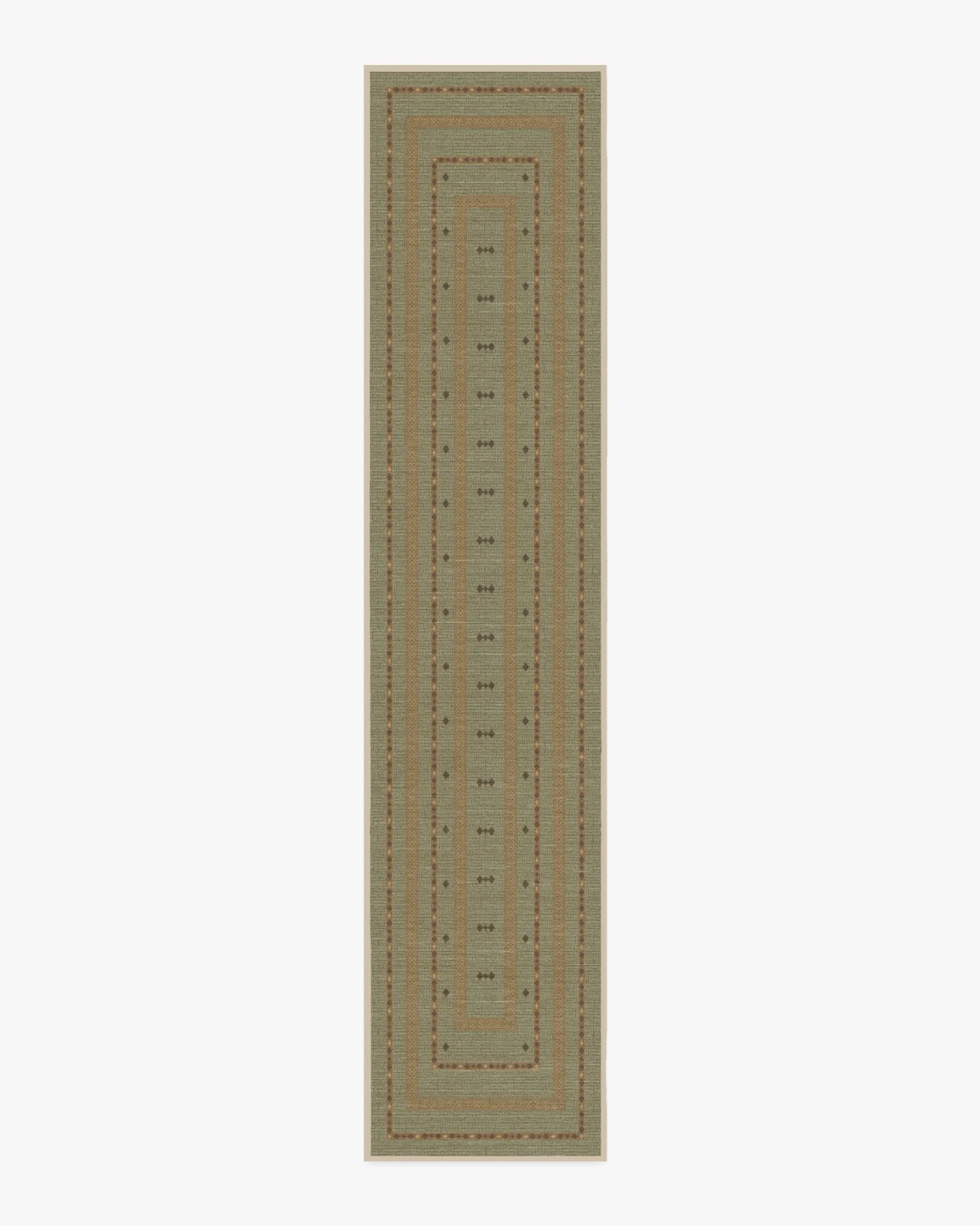 Experience stunning and sustainable style with our goop Dilara Sage Green Rug. Inspired by traditional Tuareg motifs, this modernised and symmetrical design features intricate yet minimalist concentric banding, meticulously crafted with delicate hand-done textures. Its soothing colours create a serene atmosphere, with light, warm neutrals, subtle hints of brown, and pops of cream blending against a sage background. Water-resistant, stain-resistant, and machine-washable. Rug colours may vary slightly according to your device and the lighting in your space. 60x90 | Machine Washable Area Rug | Kid & Pet Friendly | Indoor Rugs | Dilara Sage Green Rug by goop | Ruggable