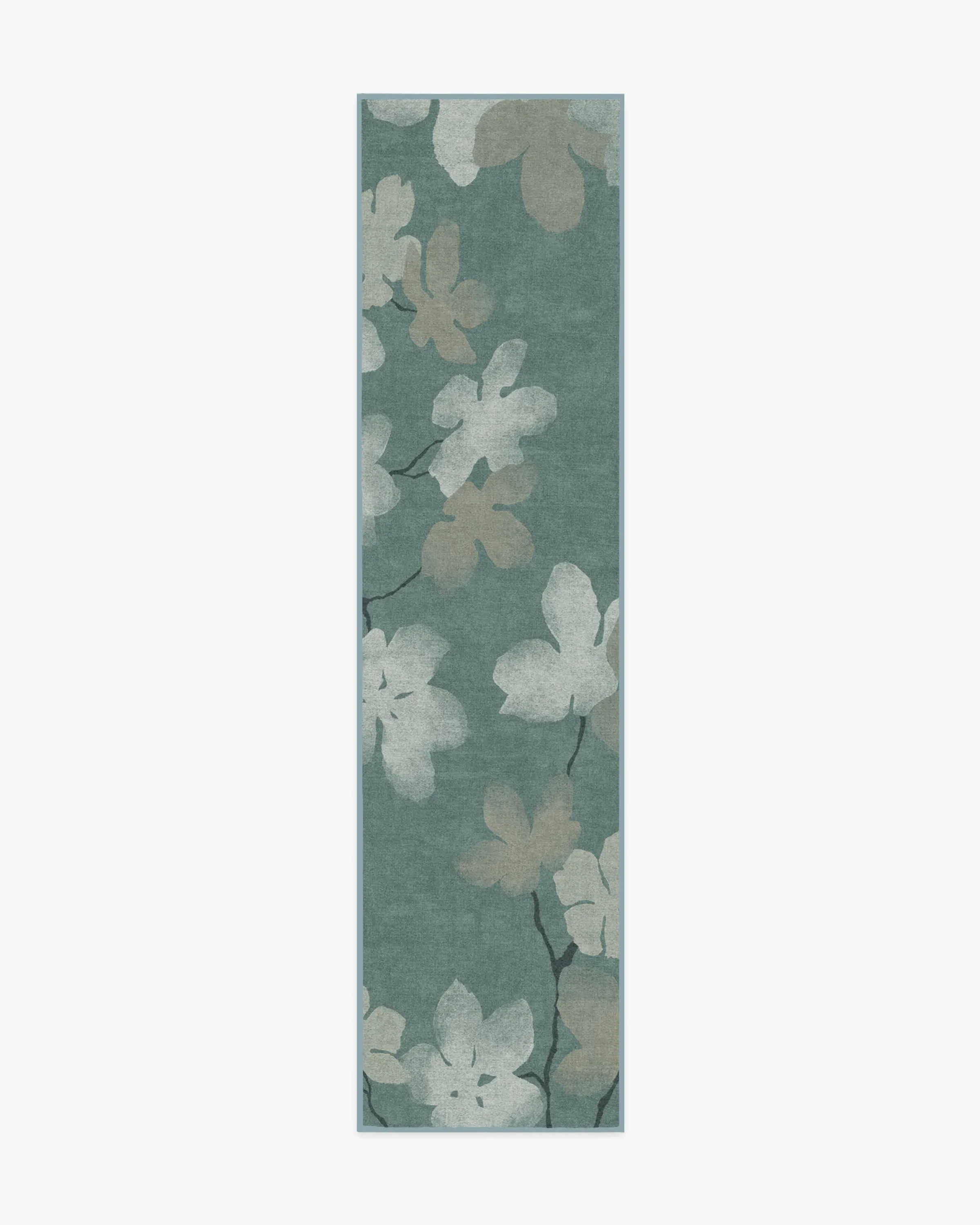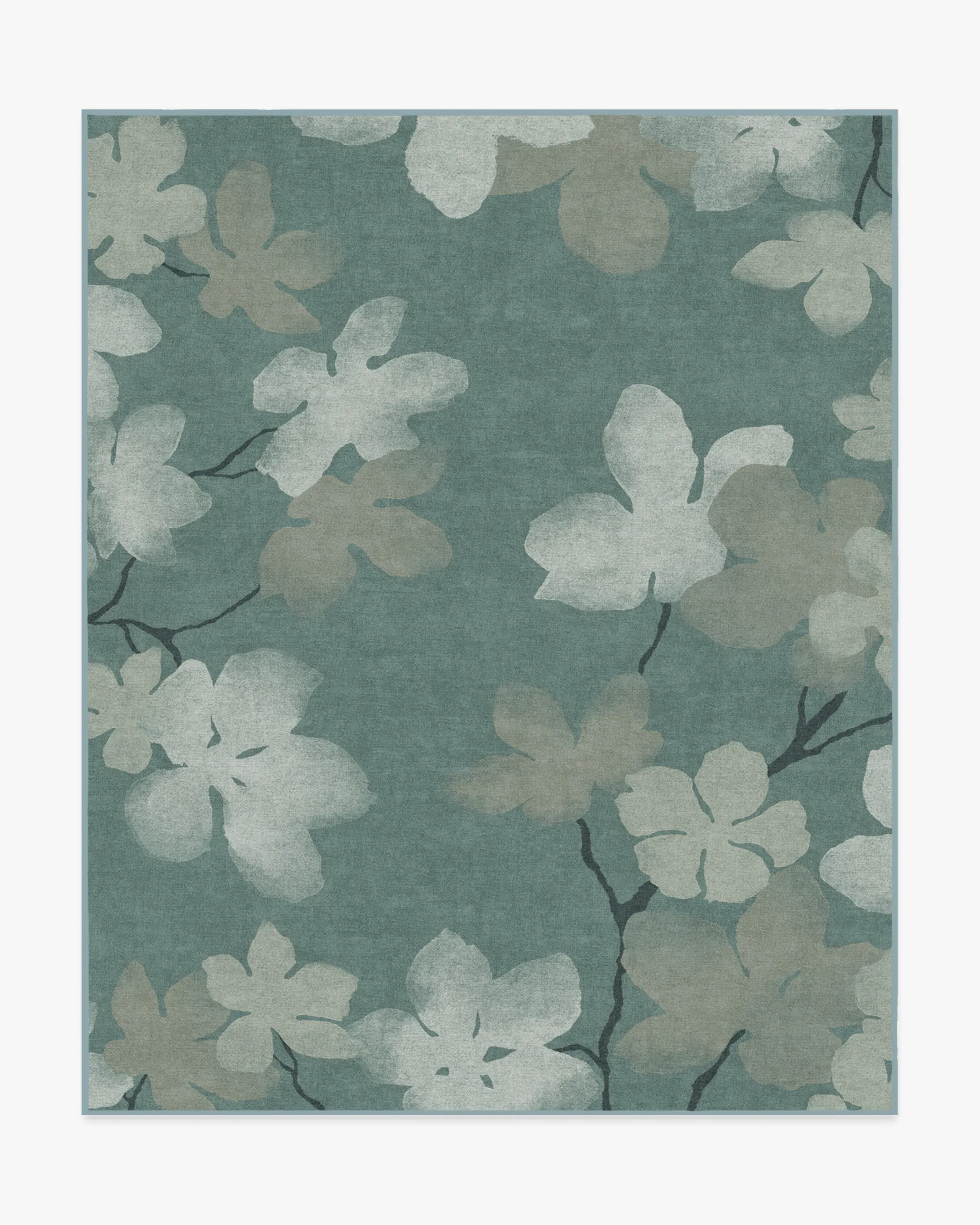 Live in full bloom with our Magnolia Teal Rug. Reminiscent of watercolour paintings, this bouquet-worthy design features large floral motifs delicately connected by intricate stems. The colour palette is a cool mix of pearl and neutrals on top of a jewel-toned background. Water-resistant, stain-resistant, and machine-washable. Rug colours may vary slightly according to your device and the lighting in your space. 60x90 | Machine Washable Area Rug | Kid & Pet Friendly | Indoor Rugs | Magnolia Teal Rug | Ruggable